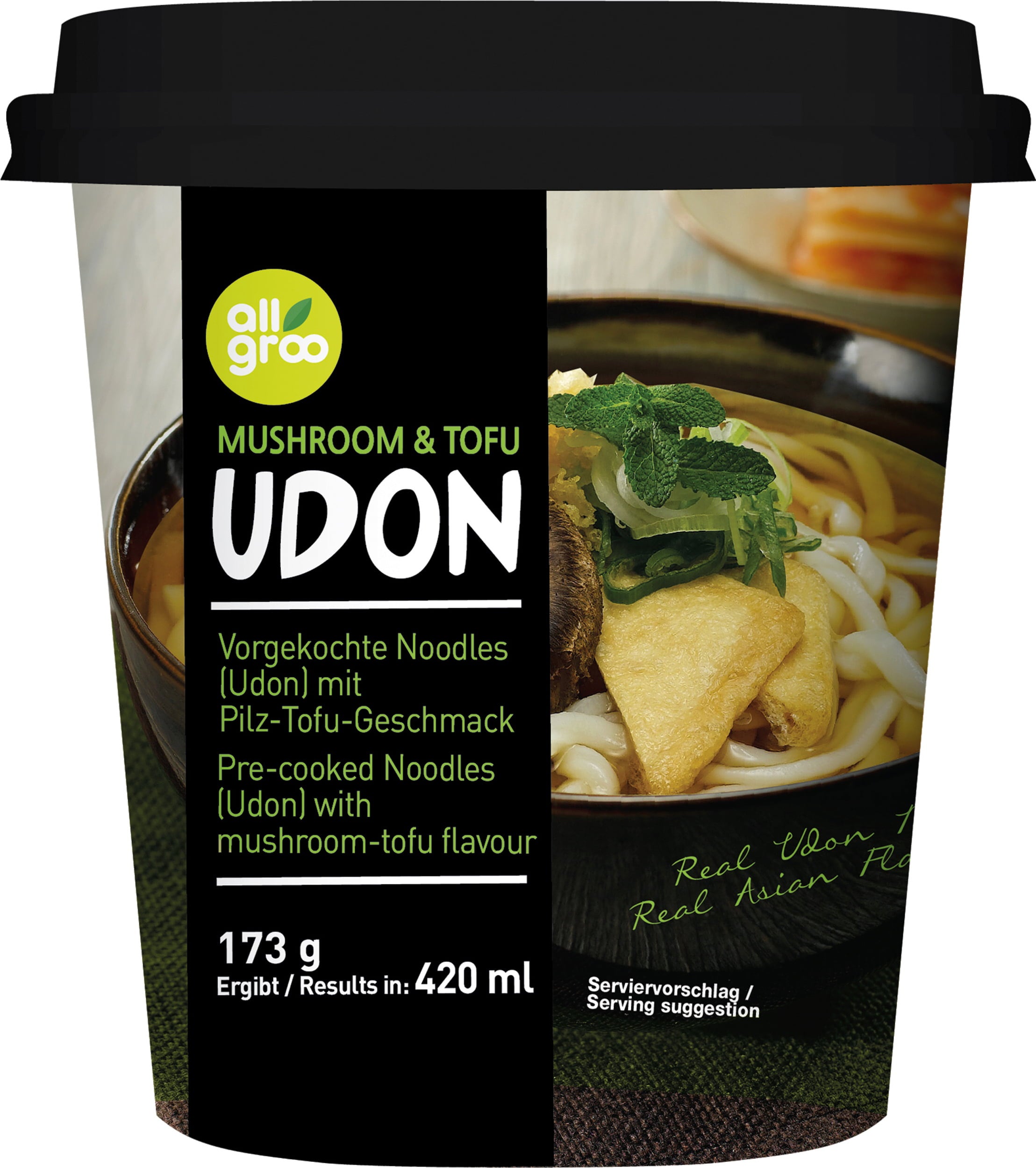 allgroo Udon Cup Noedels Champignon & Tofu, 173 g