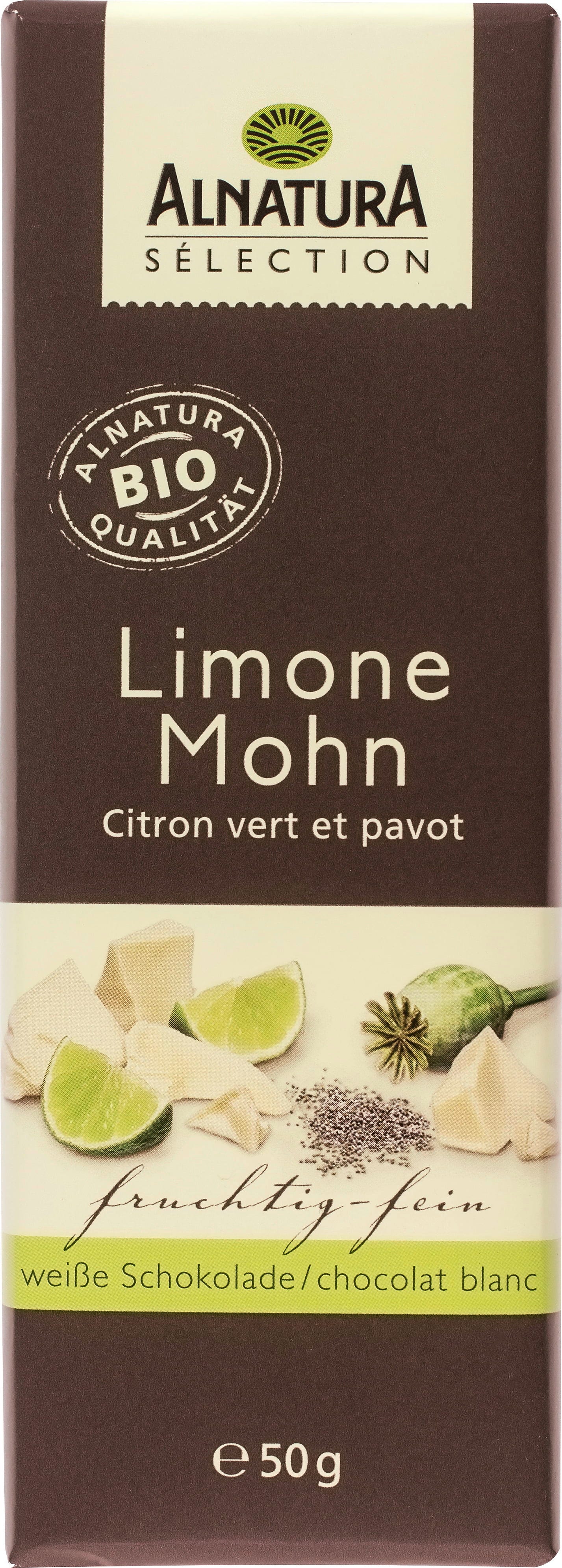 De Bio Sélection chocoladetabletjes Limone-Mohn van Alnatura combineren witte chocolade met frisse limoen en aromatische maanzaadjes. De kleine tabletjes zijn ideaal om te delen of om zelf van te genieten.