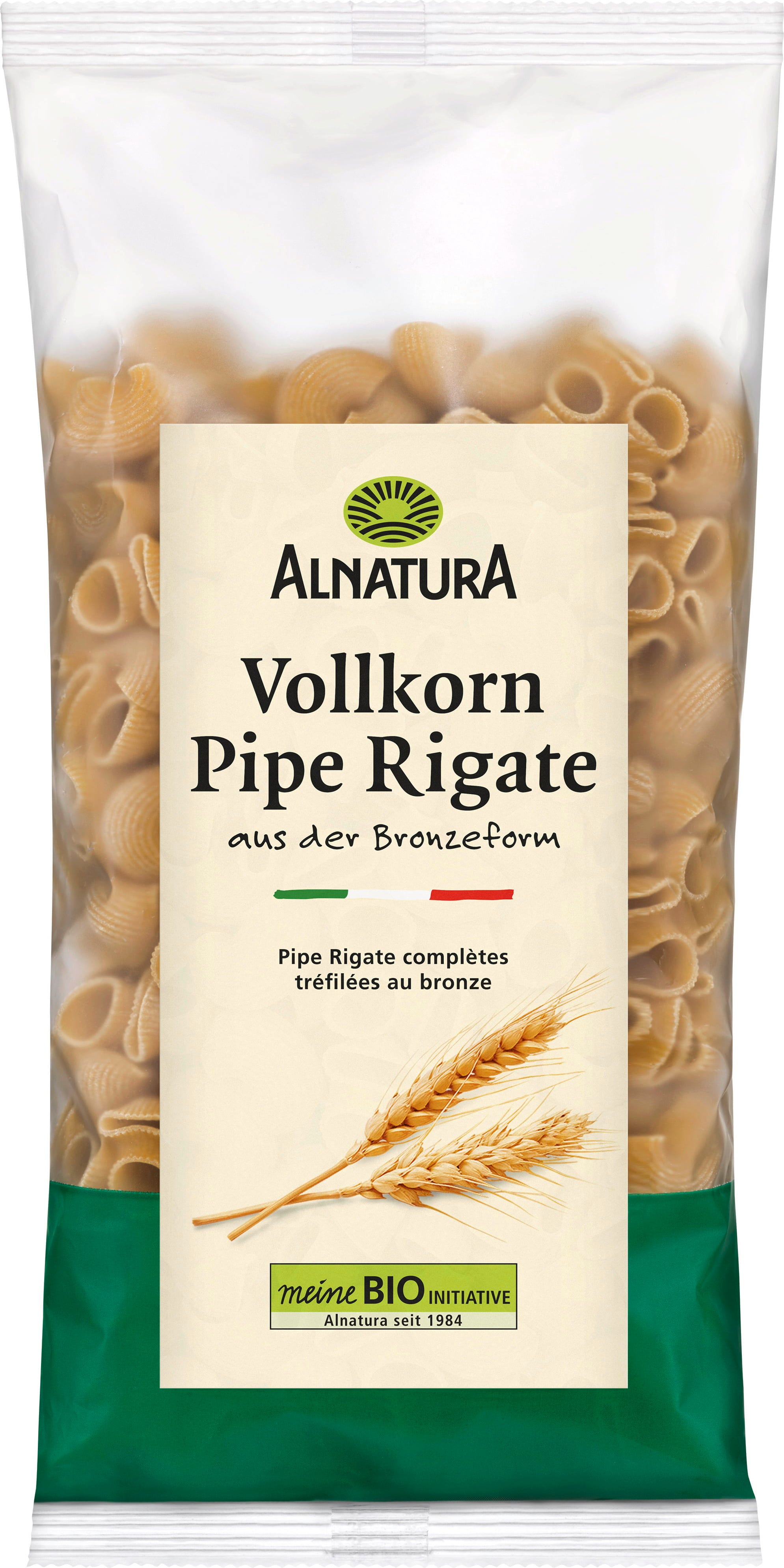 De Alnatura biologische volkoren Pipe Rigate nemen sauzen bijzonder goed op, niet alleen dankzij de geribbelde vorm, maar ook door het ruwe oppervlak dat ontstaat bij het gebruik van bronzen matrijzen.