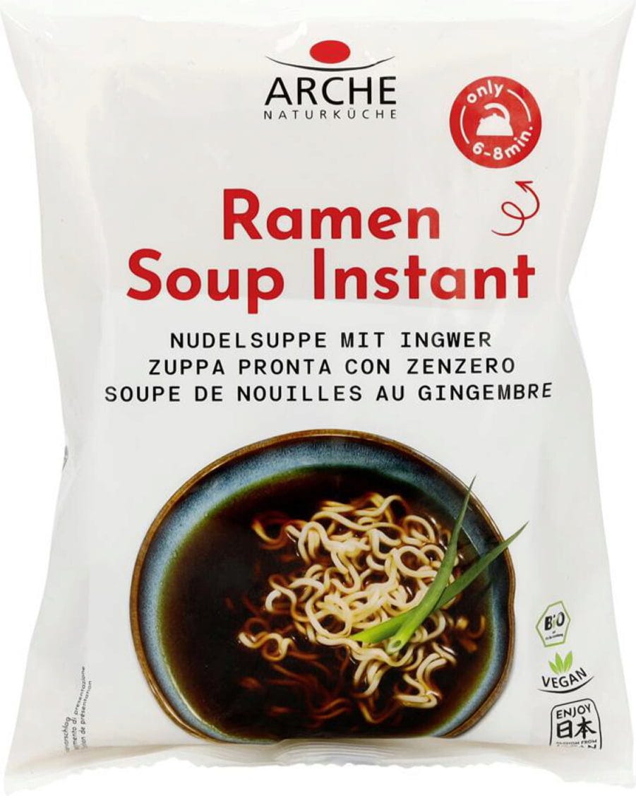 Met deze instant ramen van Arche maak je snel een biologische noedelsoep in Japanse stijl. De heerlijke smaken van miso, shoyu sojasaus en sesamolie worden in de bouillon afgerond met pittige gember en chilipeper. De klassieke ramen noedels van tarwemeel zijn de perfecte begeleiding. Deze ramen vult niet alleen, maar maakt ook gelukkig!