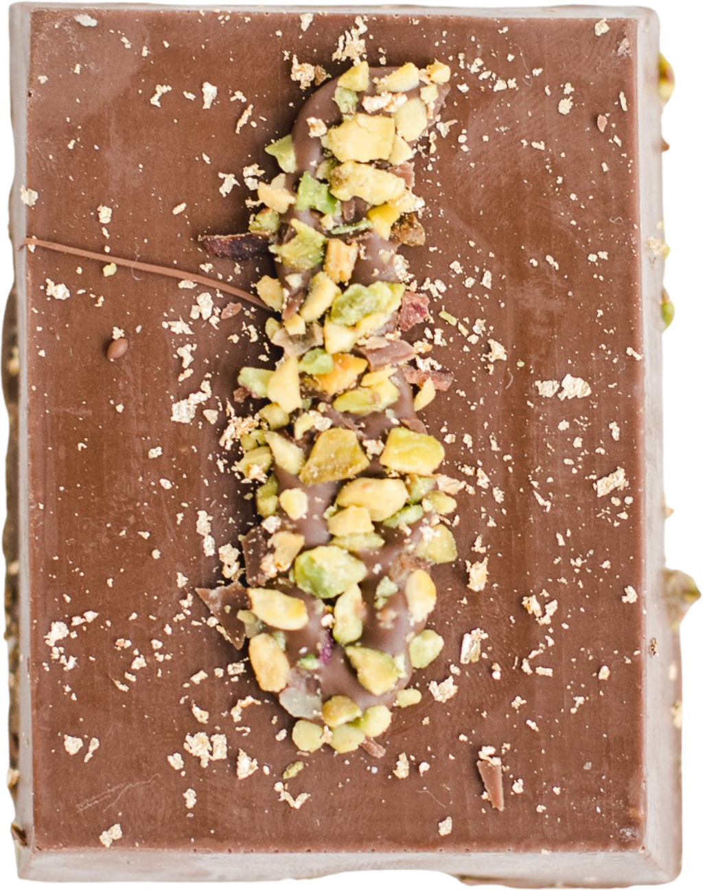 Geniet van luxe bij elke hap: Delicate melkchocolade gevuld met onweerstaanbare pistachecrème en krokante kadayif. De chocoladereep is verfijnd met echt goud. Het recept is vrij van kunstmatige kleur- en smaakstoffen.