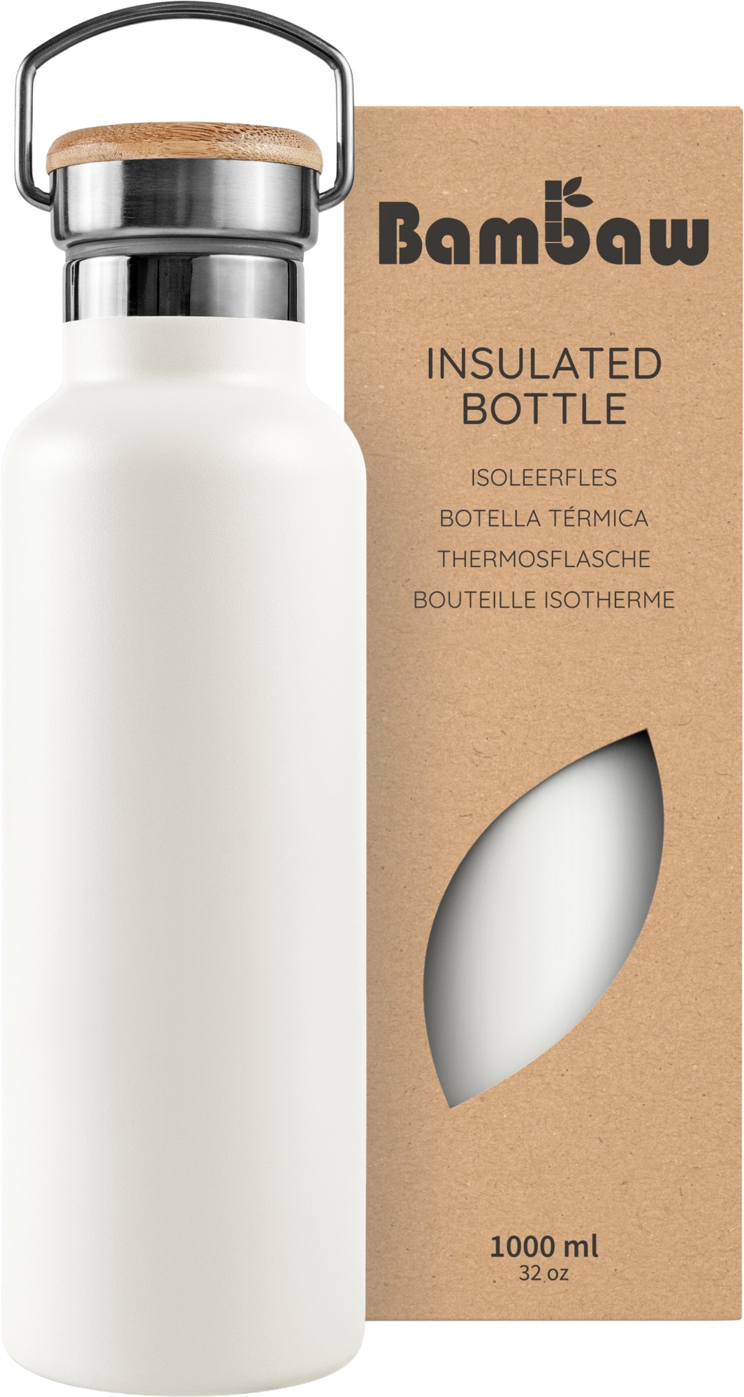 Bambaw Roestvrijstalen Thermosfles, 1000 ml, Polar White
