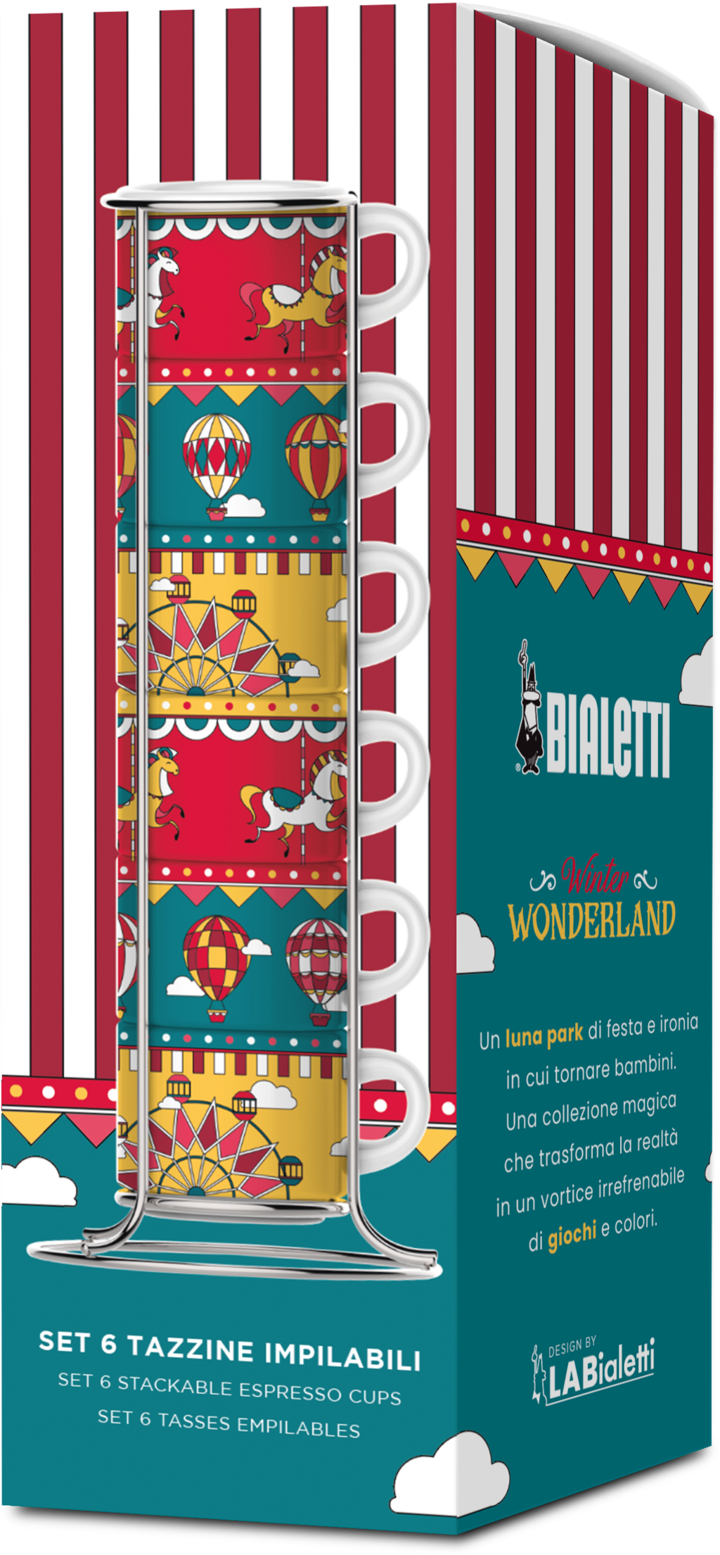 Gun jezelf een time-out met een extra dosis magie: de Winter Wonderland collectie van Bialetti brengt je terug naar je favoriete jeugdherinneringen. Speelse motieven zoals carrouselpaarden en kleurrijke ballonnen maken van elk kopje een kunstwerkje - perfect voor je eigen winterstemming.
