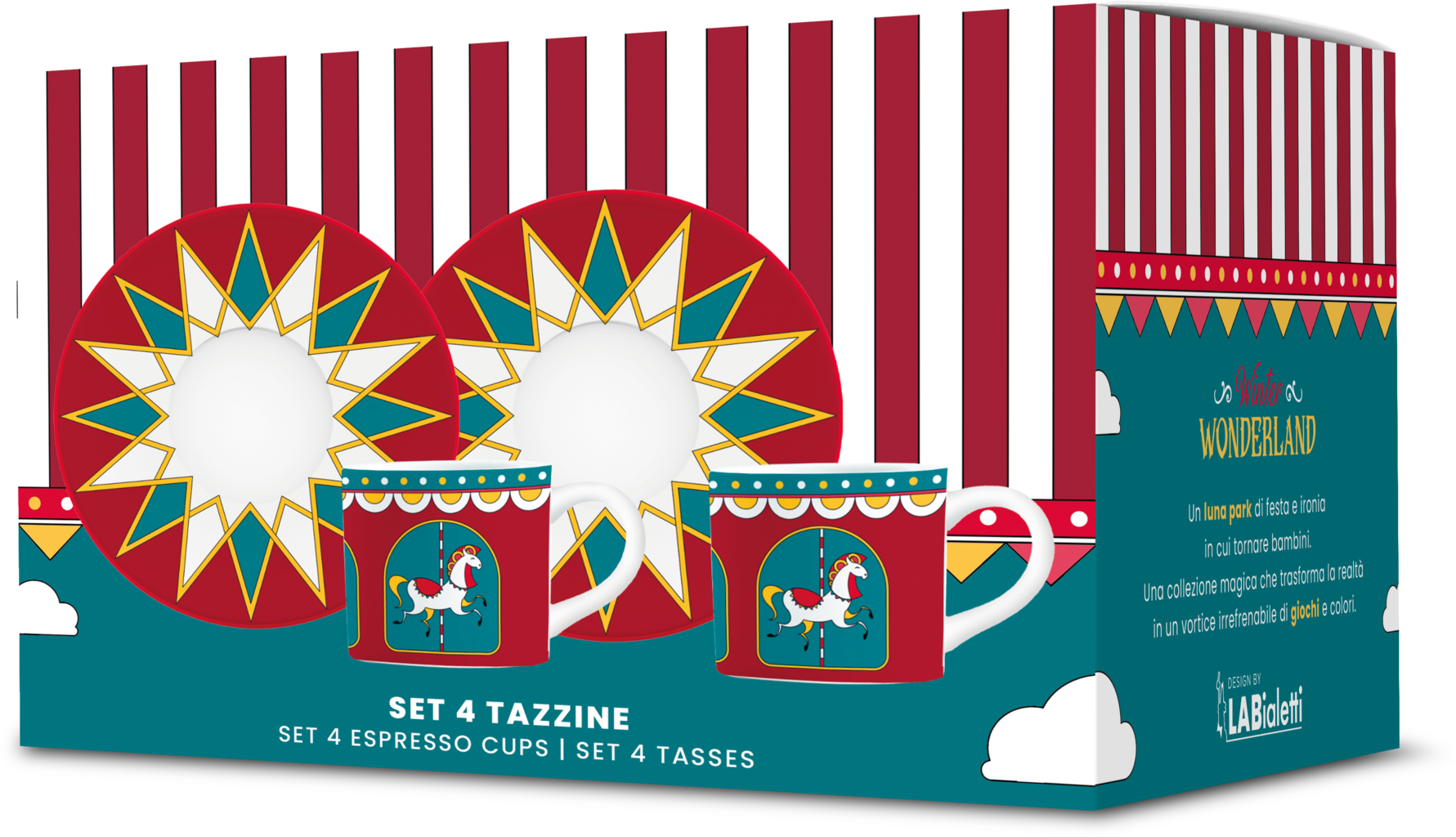 Dompel jezelf onder in nostalgisch genieten met Bialetti! De rode porseleinen kopjes, versierd met charmante carrouselpaarden, brengen feestelijke magie naar je koffiepauze. Er zijn bijpassende schoteltjes met een betoverend stervormig patroon - samen maken ze van je espressopauze een bijzonder moment. Een perfecte set voor iedereen die feestelijke herinneringen en een kerstsfeer in het dagelijks leven wil brengen!