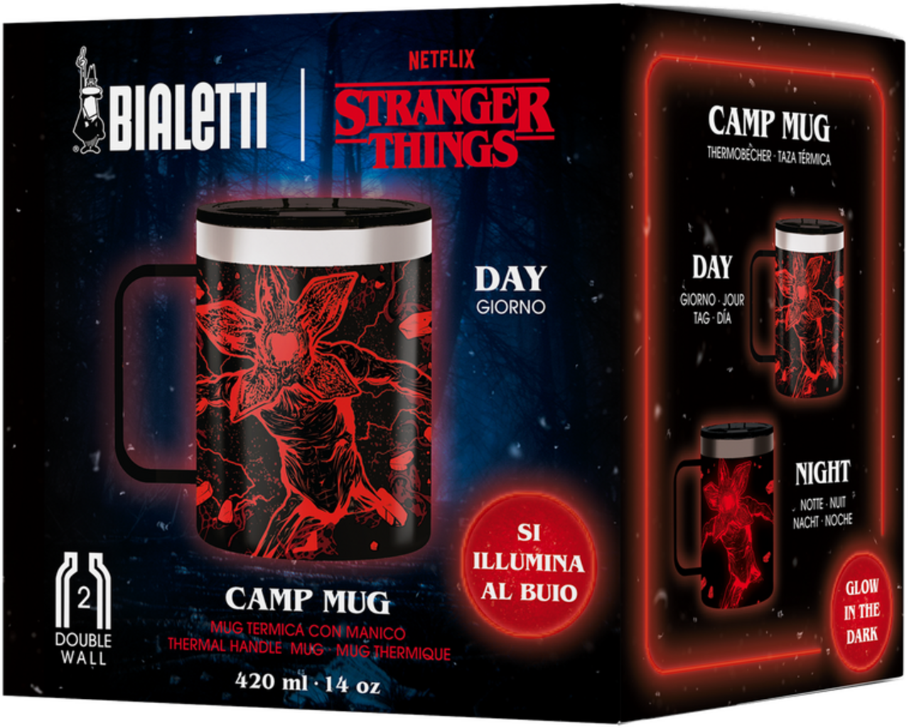 Prachtige, gedetailleerde 3D-graphics in de look van "Stranger Things" maken van deze thermomok een echte topper voor alle fans van de cultserie.