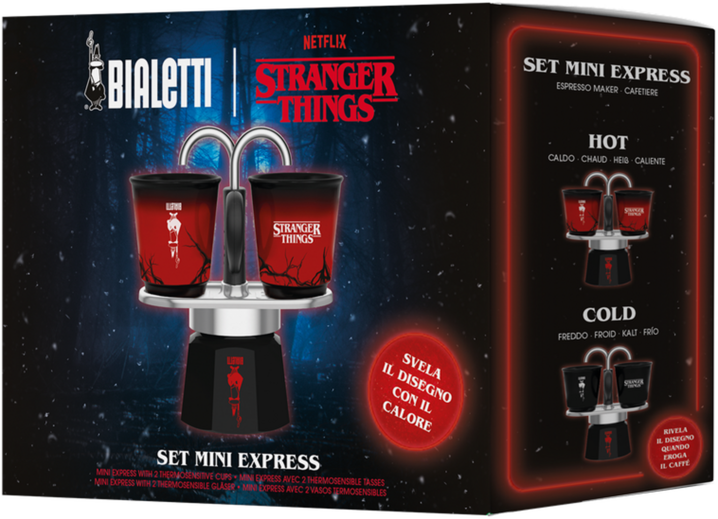 De populaire MINI Express espressomachine van Bialetti is nu ook verkrijgbaar in het exclusieve "Stranger Things" design. Authentiek koffiegenot in een praktisch en compact formaat: perfect voor thuis en onderweg, bijvoorbeeld op de camping.