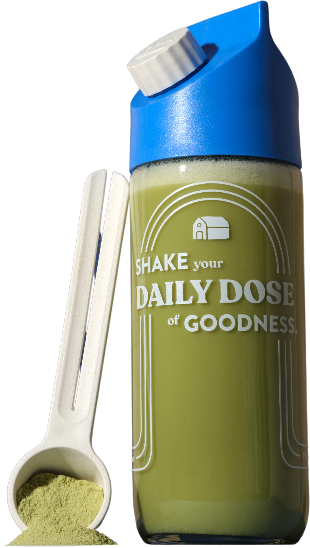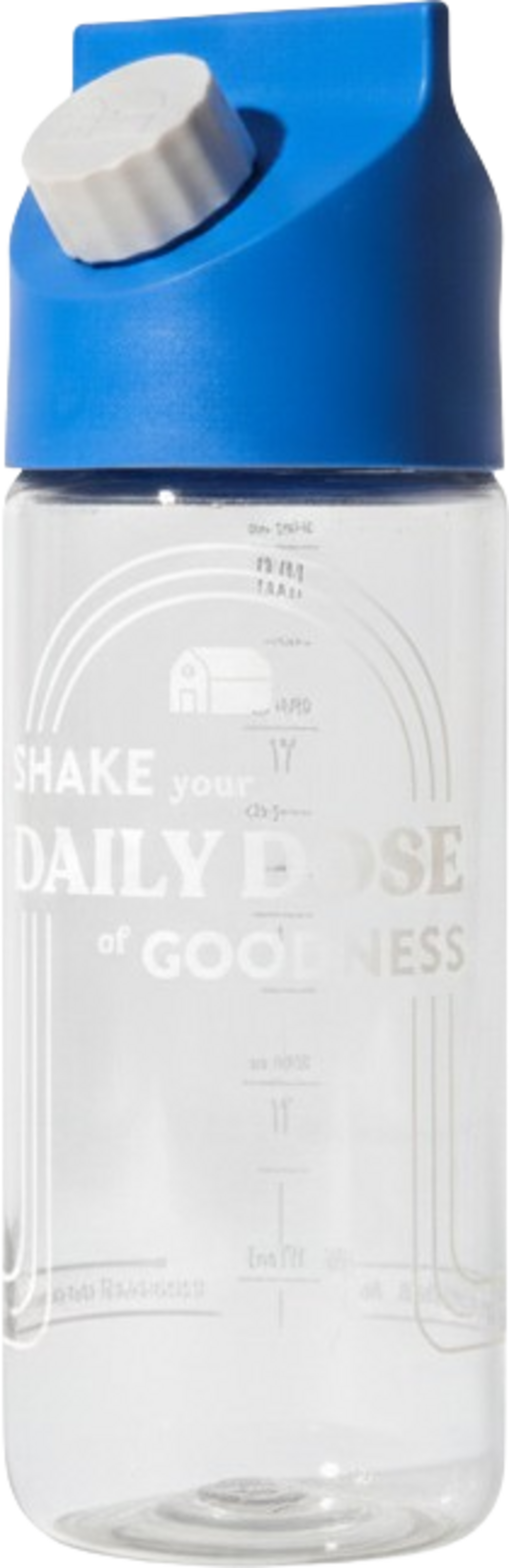 Ben je al aan het schudden of nog steeds aan het sjouwen? Met de praktische Blue Farm glazen fles en bijpassende doseerlepel neem je voorgoed afscheid van zware melkpakken. Bereid je favoriete Blue Farm drinkpoeder vers en snel - thuis of onderweg.