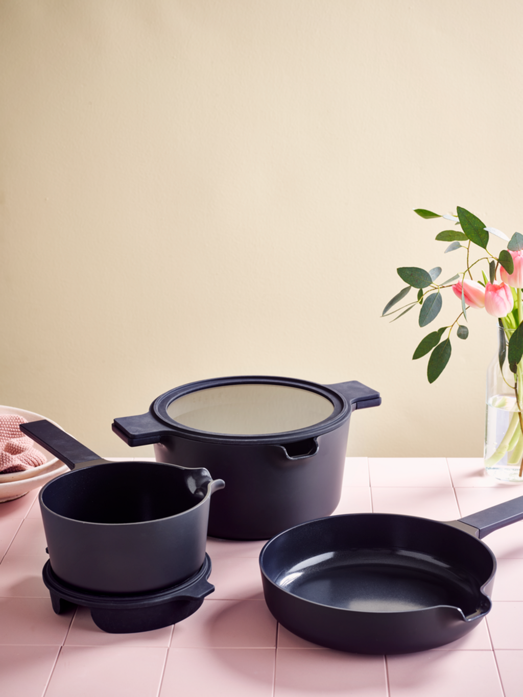Deze 5-delige pannenset biedt alles wat je nodig hebt om gezond en veelzijdig te koken. Het is gemaakt van gerecycled aluminium en maakt indruk met zijn hoogwaardige antiaanbaklaag, robuuste afwerking en antislip siliconen handgrepen. Geschikt voor alle soorten kookplaten - inclusief inductie en oven.