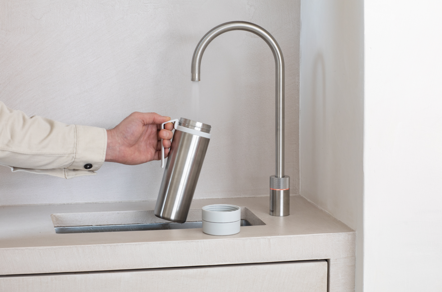 Bijzonder slim: het handvat kan ook worden gebruikt als riemclip en biedt een praktische steun voor het hygiënisch drogen van de fles wanneer deze omgekeerd is.