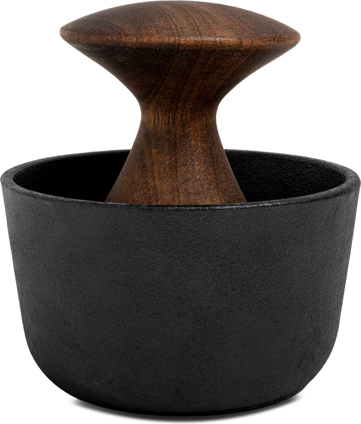 De Kiruna vijzel brengt massieve stabiliteit en pure esthetiek naar je aanrecht. Gemaakt van duurzaam gietijzer, stelt hij je door het doordachte binnenprofiel in staat om droge kruiden extreem efficiënt en binnen enkele seconden te vermalen. De ergonomische stamper van acaciahout ligt daarbij natuurlijk en prettig in je hand. Dankzij de geïntegreerde siliconen ring aan de onderkant blijft de vijzel altijd veilig op zijn plek staan en worden je oppervlakken tegelijkertijd ontzien. Een eerlijk en functioneel designobject dat de volle aroma's van je ingrediënten op traditionele wijze vrijgeeft.