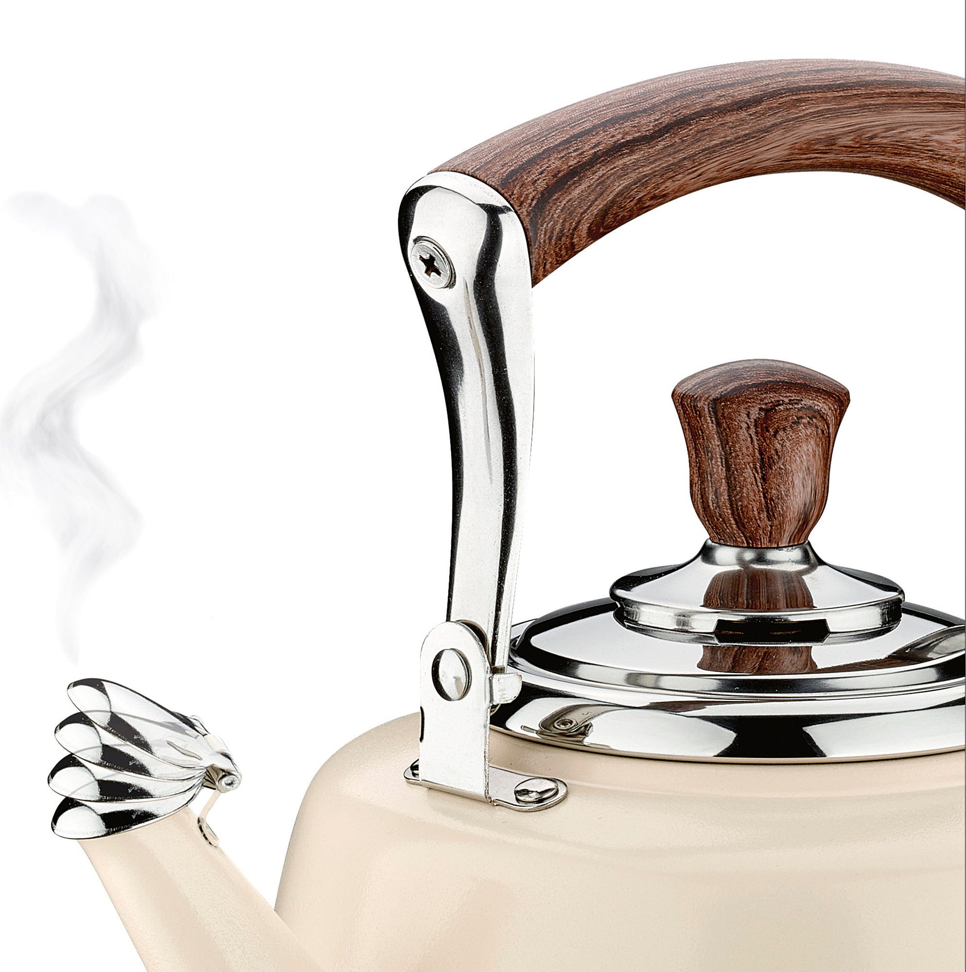 De cilio BIANCO fluitketel maakt indruk met zijn crèmewit gelakte roestvrij staal, dat perfect harmonieert met de warme accenten van de handgrepen. Of het nu voor je ochtendthee is of voor een met de hand gefilterde koffie.