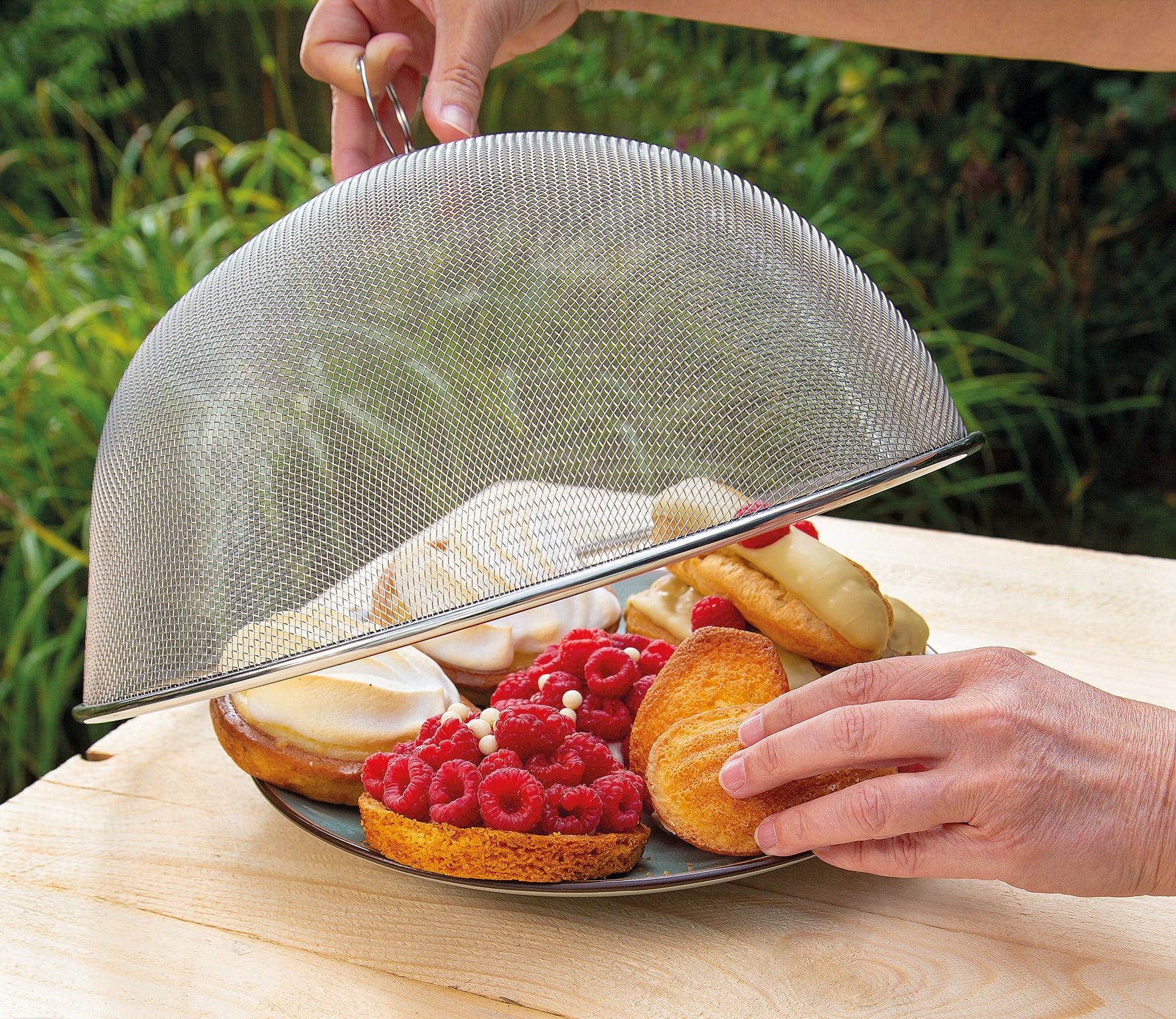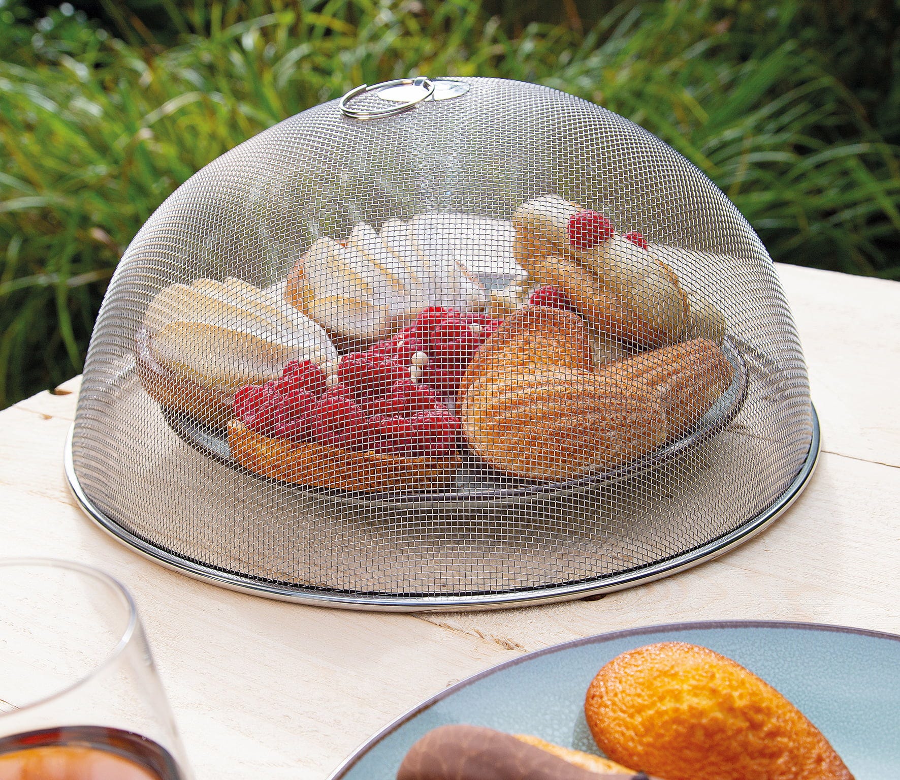 Geniet van je picknick, middagtaart of buitenbuffet zonder ongenode gasten! De ESTIVO afdekking van cilio biedt effectieve en esthetische bescherming tegen vliegen, wespen en andere insecten, terwijl je eten smakelijk zichtbaar blijft. Met een diameter van 35 cm past de afdekking moeiteloos over grote gebaksborden, fruitschalen of grillplaten.