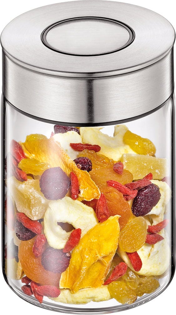 - Glazen pot met roestvrijstalen deksel