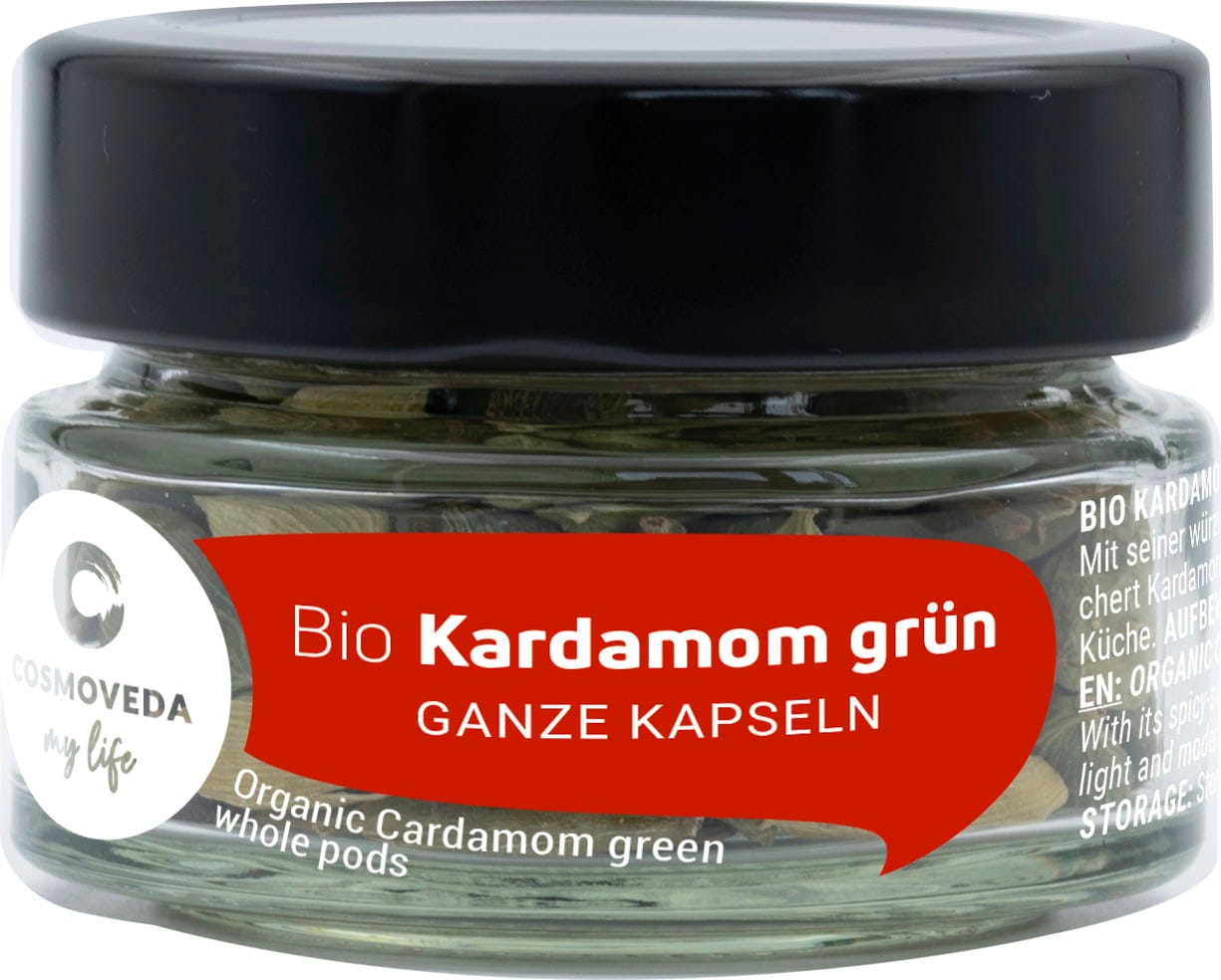 De groene kardemom, met zijn kleine, aromatische, zwarte zaden, wordt vaak versgemalen in desserts, fijne dranken, melk, rijst en currygerechten. Kardemom is een van de oudste en meest waardevolle specerijen ter wereld, direct na saffraan en vanille. De oude Grieken en Romeinen kenden het al. Het kruid komt uit Zuid-India, tegenwoordig ook uit Sri Lanka, Guatemala, Tanzania en Brazilië.