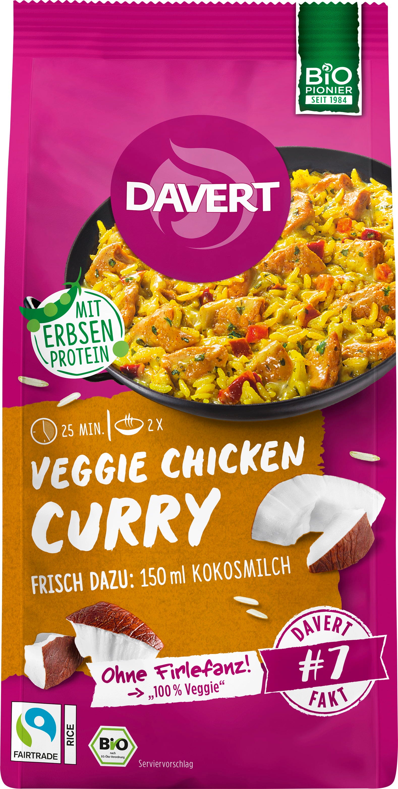 Davert Bio Veggie Chicken Curry - op Basis van Erwteneiwit, 120 g
