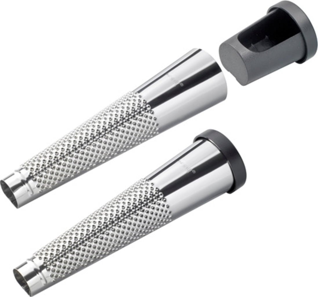 Het echte hoogtepunt is echter de uittrekbare doosje van robuust kunststof. Zo heb je je nootmuskaat altijd bij de hand en is hij optimaal beschermd tegen smaakverlies. De vaatwasserbestendige rasp ligt prettig in de hand en is een stijlvolle blikvanger in je kruidencollectie!