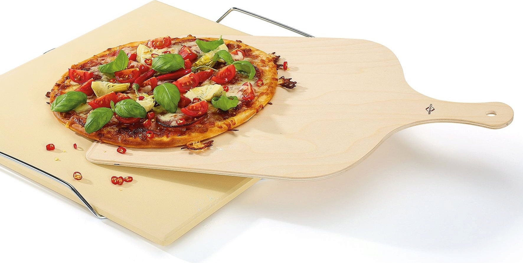 - Schuift gemakkelijk onder pizza, flammkuchen etc. dankzij de afgeplatte kant
