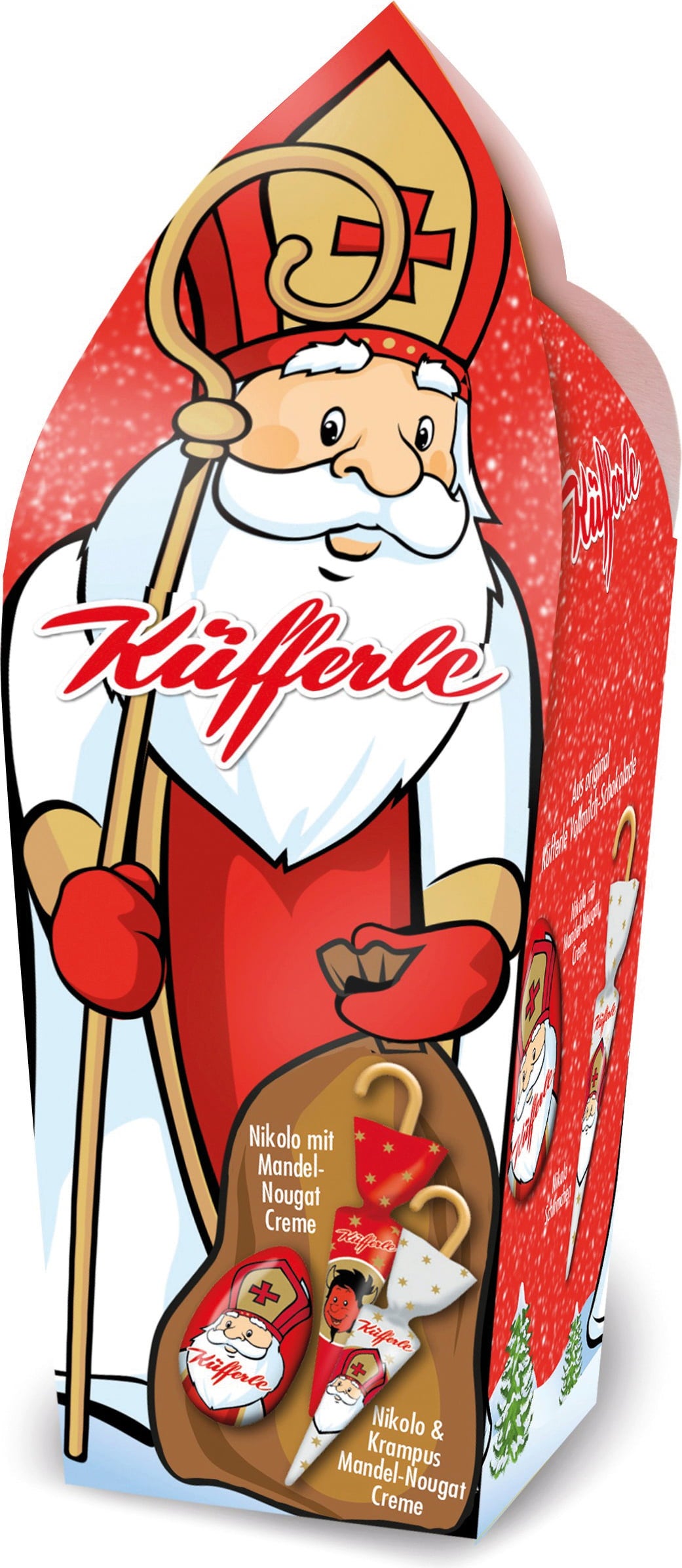 Verwen jezelf in de adventstijd met het Küfferle Sinterklaascadeau: gevuld met de geliefde chocoladeschermpjes van fijne melkchocolade en heerlijke Nikolotaler met romige amandel-nougatvulling. Dit charmante cadeautje tovert gegarandeerd een glimlach op ieders gezicht – perfect in de schoen van Sinterklaas, als feestelijke tafeldecoratie of als zoete verrassing tussendoor. Een echte klassieker die de kersttijd extra bijzonder maakt.