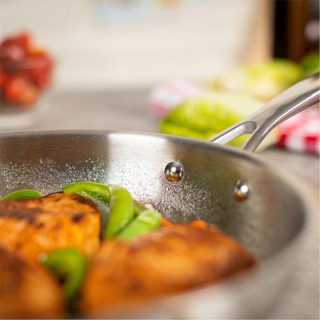 Met deze koekenpan van hoogwaardig roestvrij staal kun je je eten echt goeed braden! De pan zonder coating is ideaal voor gebruik bij hoge temperaturen, bijvoorbeeld om vlees dicht te schroeien. Omdat hij ook is ontworpen voor het bereiden van voedsel in de oven, kun je het vlees vervolgens garen of andere heerlijke gerechten bakken en gratineren!