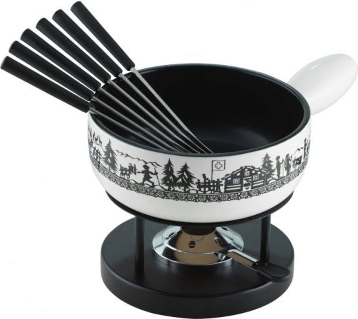 De kleuren en het design doen denken aan de Zwitserse Alpen, sneeuw en Kerstmis en maken de sfeer van een fondue-avond met vrienden of familie perfect compleet. Gewoon de brander aansteken en genieten.