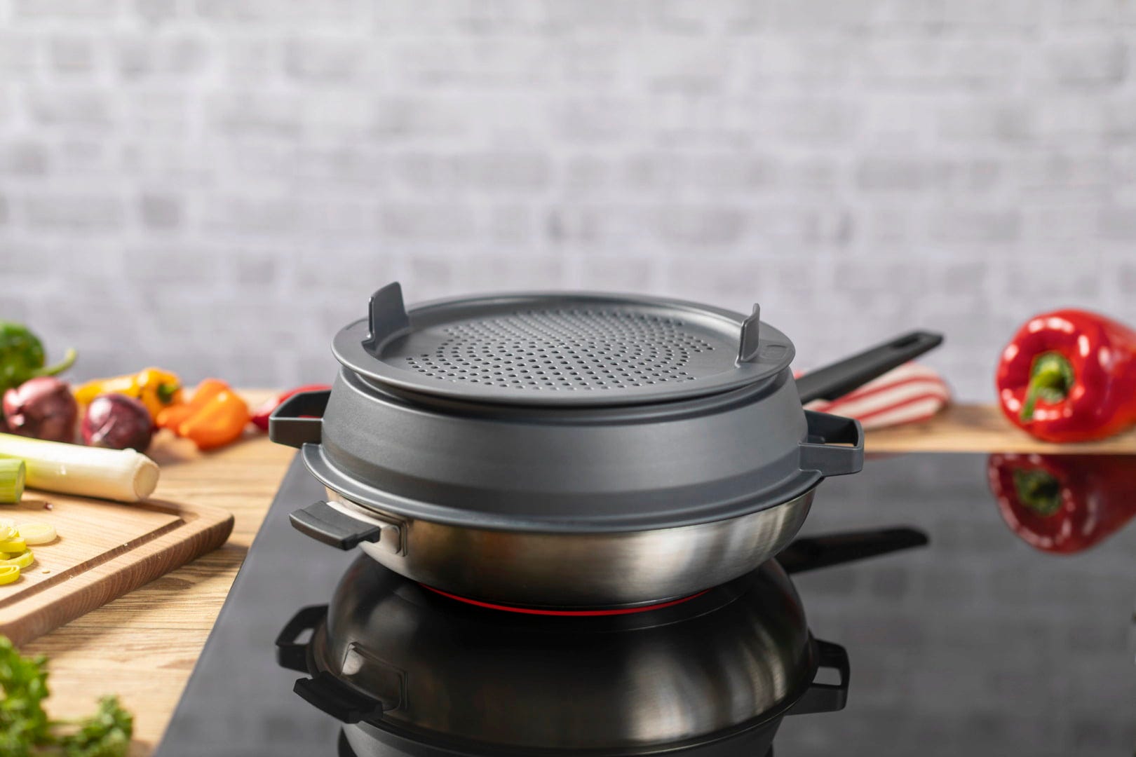 Slimme multifunctionaliteit die niets te wensen overlaat: slim koken, makkelijk serveren, vers houden & ruimtebesparend opbergen.