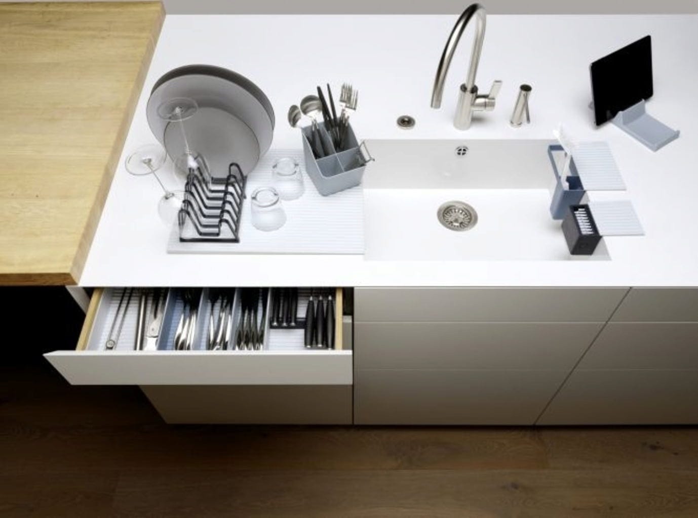 Het overzichtelijke inzetstuk voor lades is ideaal om keukengerei of kantoorbenodigdheden snel terug te vinden. Het zorgt voor orde en gemakkelijk verwijderen dankzij de golvende basis.