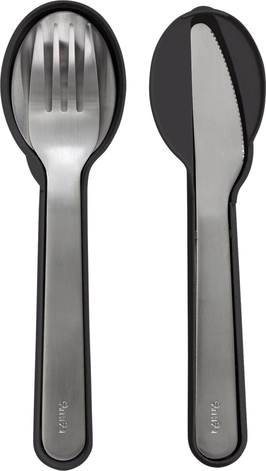 - Driedelige bestekset van roestvrij staal (mes, vork en lepel)