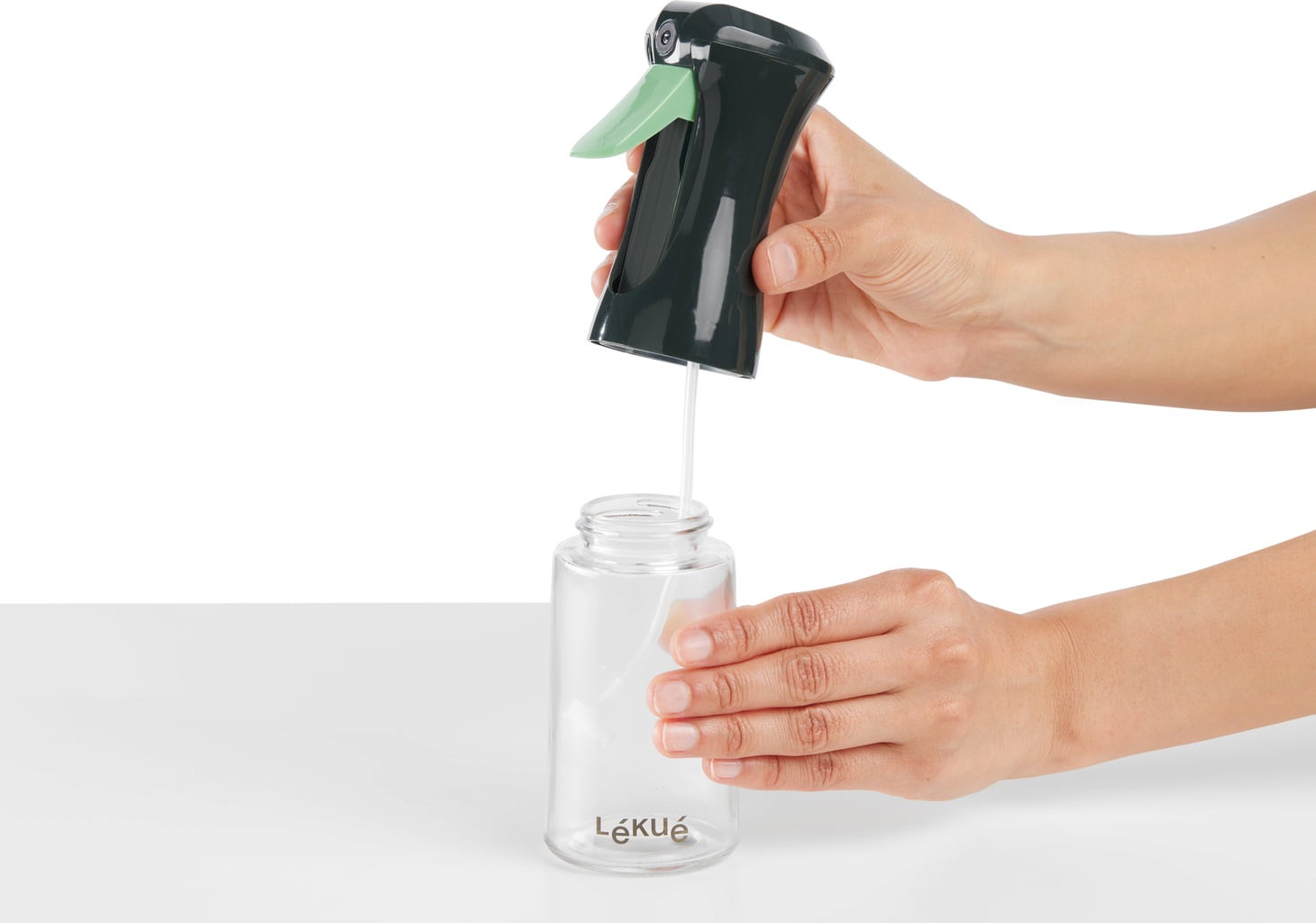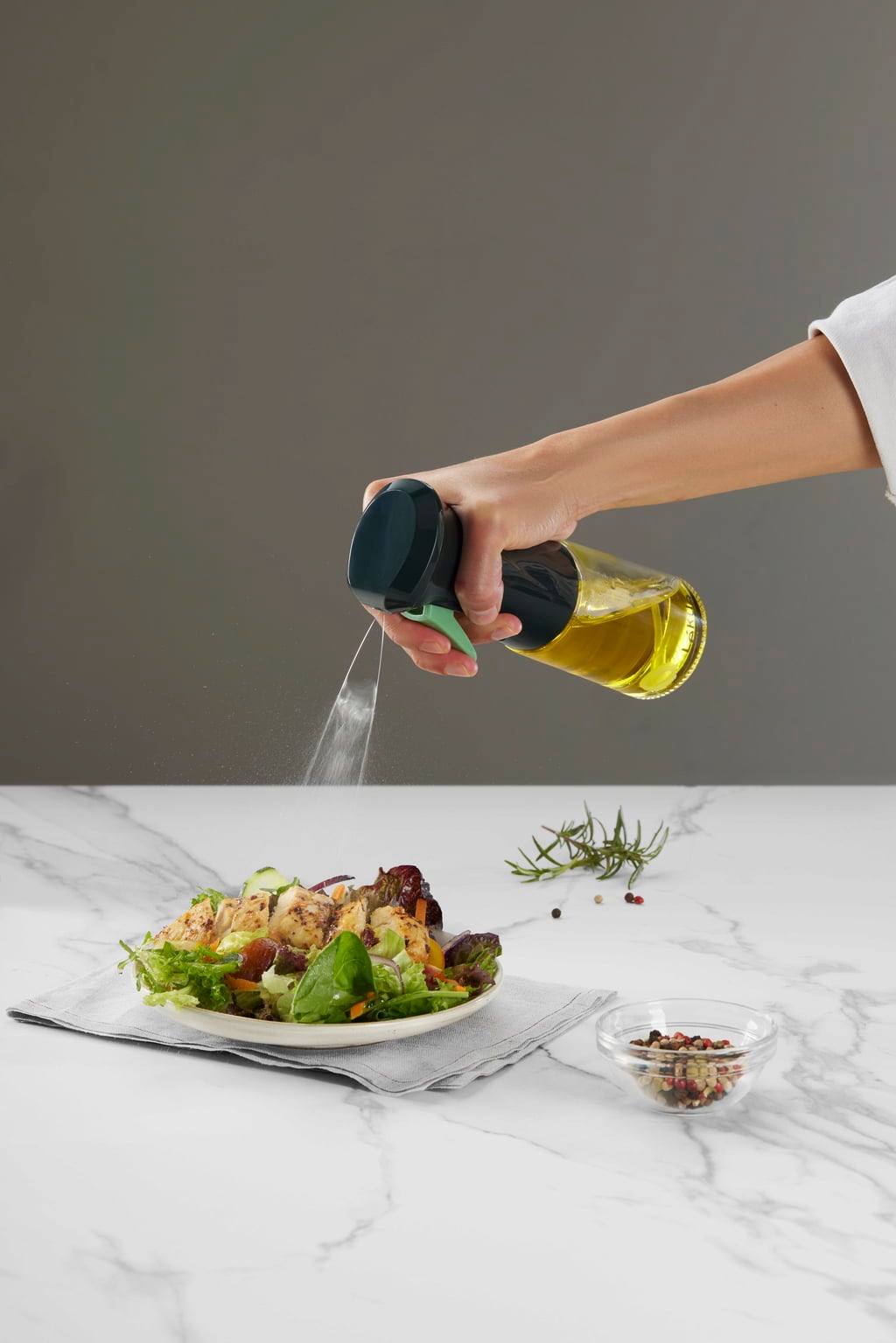 Een slimme anti verstoppingsfilter zorgt voor een betrouwbare, gelijkmatige verdeling, zelfs met olijfolie van hoge kwaliteit, en voorkomt dat onzuiverheden blijven plakken. De eenvoudig te bedienen trekker geeft je volledige controle: een stevige, snelle druk is genoeg voor perfecte verstuiving en precies de juiste hoeveelheid olie.