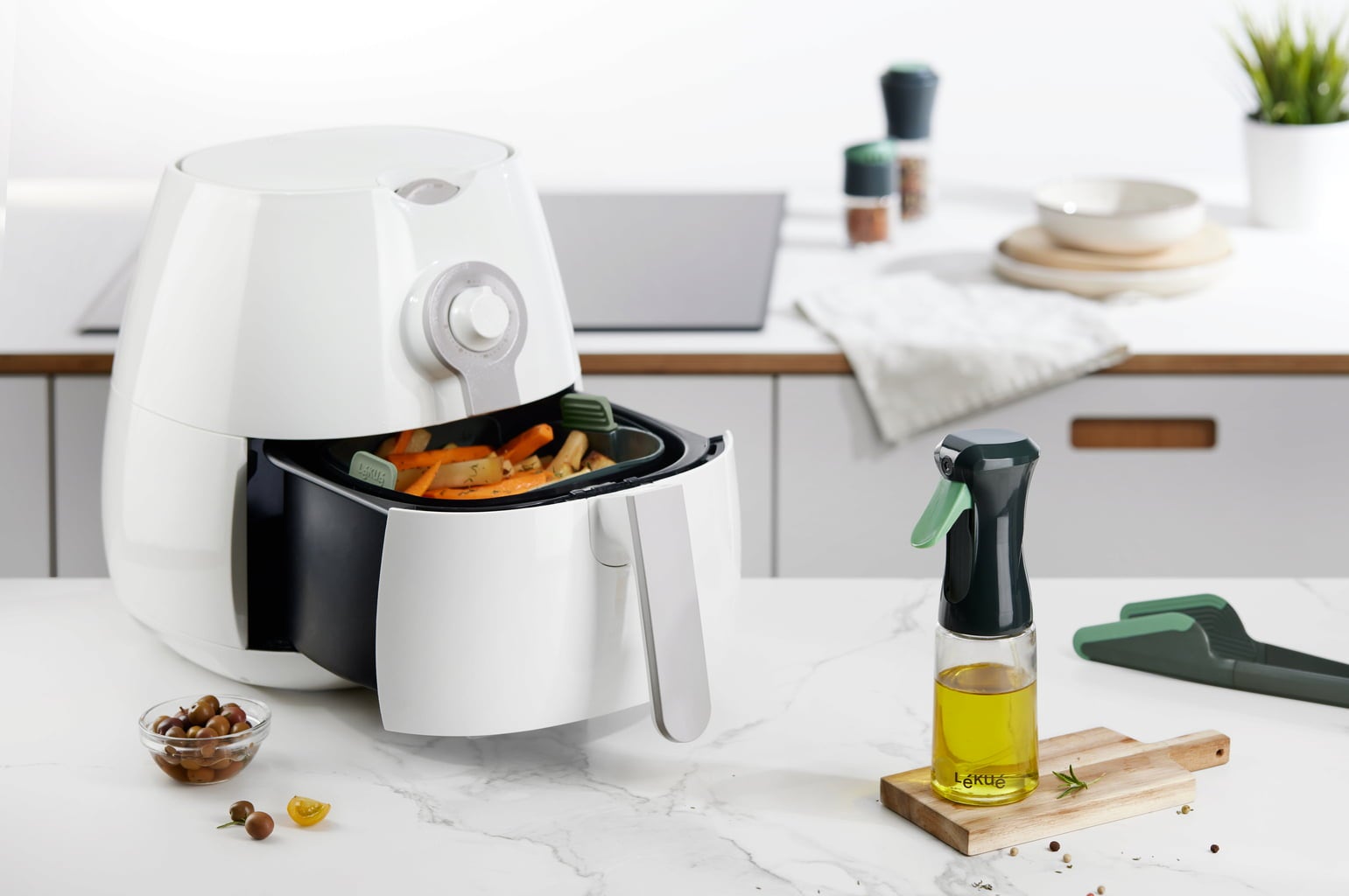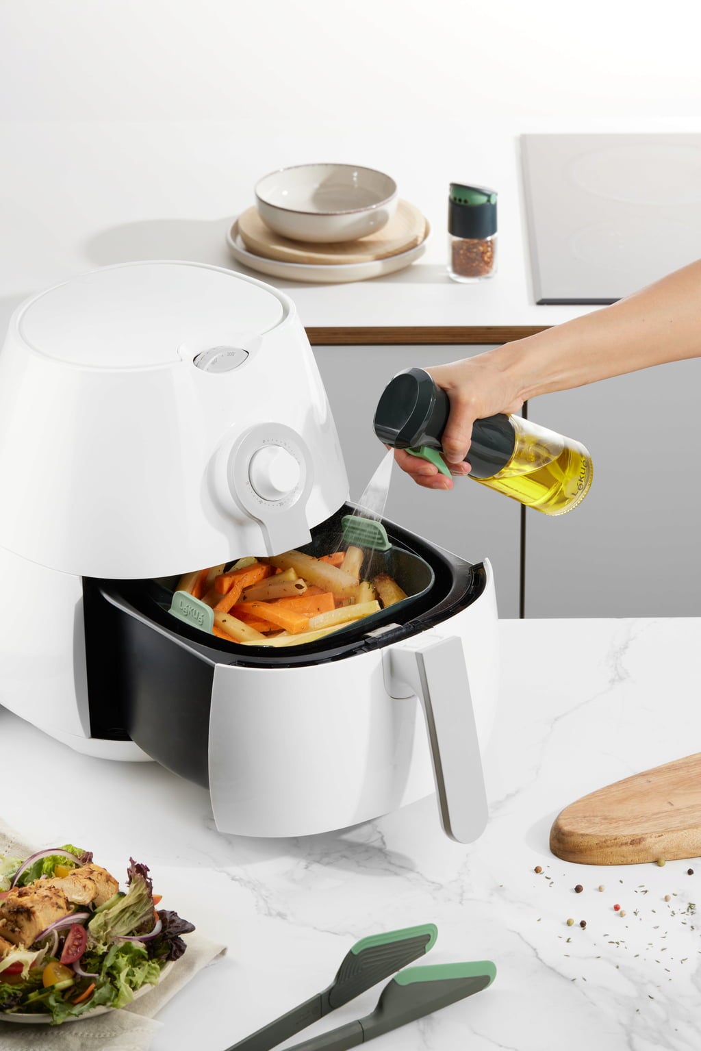 Ben je dol op knapperige gerechten uit je airfryer of pan, maar wil je zuiniger omgaan met olie? Deze olieverstuiver is precies het hulpje dat je nodig hebt! Dankzij de fijne, waaiervormige verstuiver kun je je ingrediënten - van knapperige courgettechips tot sappige kip - bedekken met een flinterdun, absoluut gelijkmatig laagje olie.