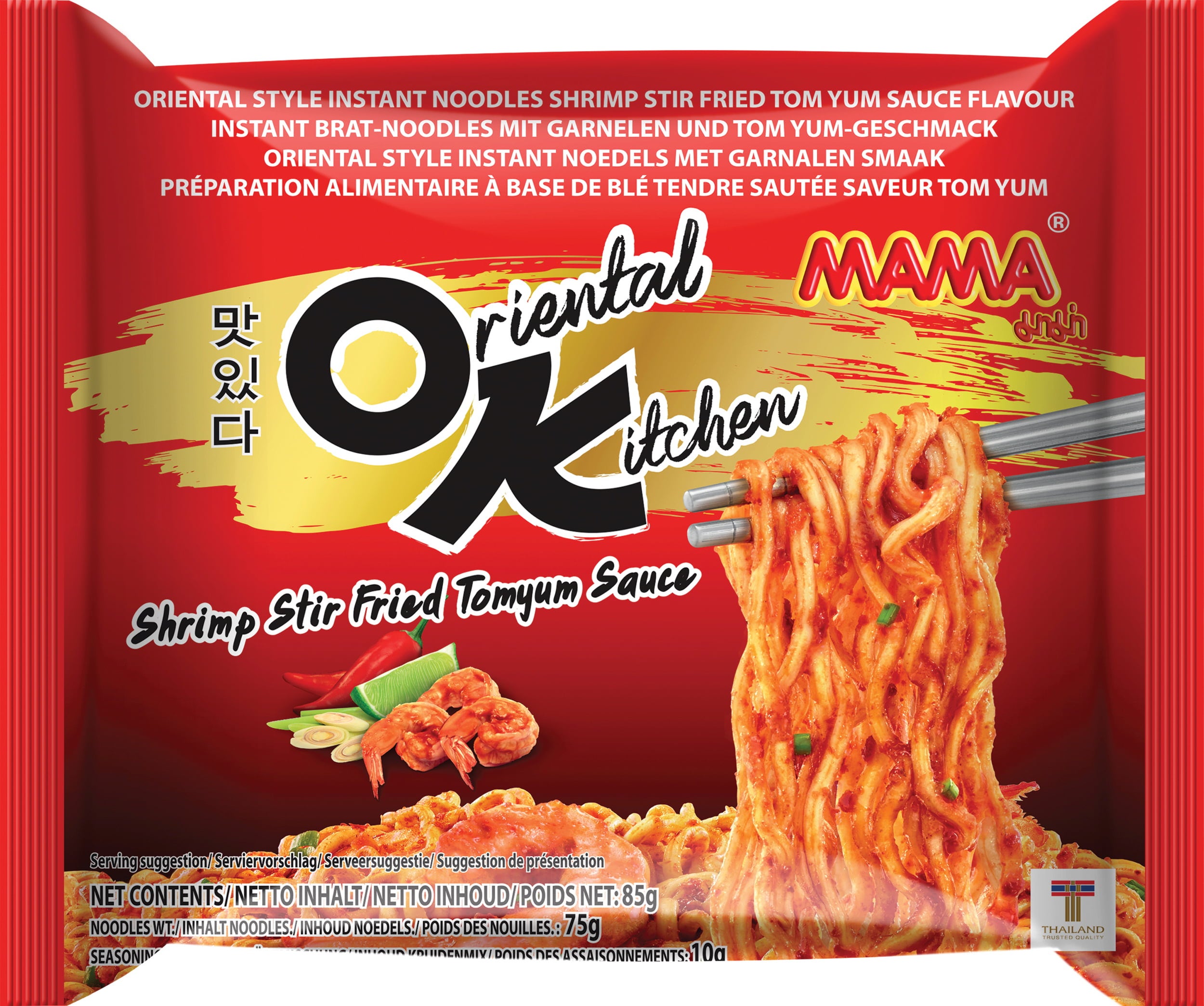 De instant noedels in de "Shrimp Stir‑Fried Tom Yum Sauce" variant van het merk MAMA combineren elastische ramen noedels met een sterk gearomatiseerde garnalen tom yum pannensaus - ideaal als je zin hebt in pittige, aromatische Thaise gerechten met een twist.