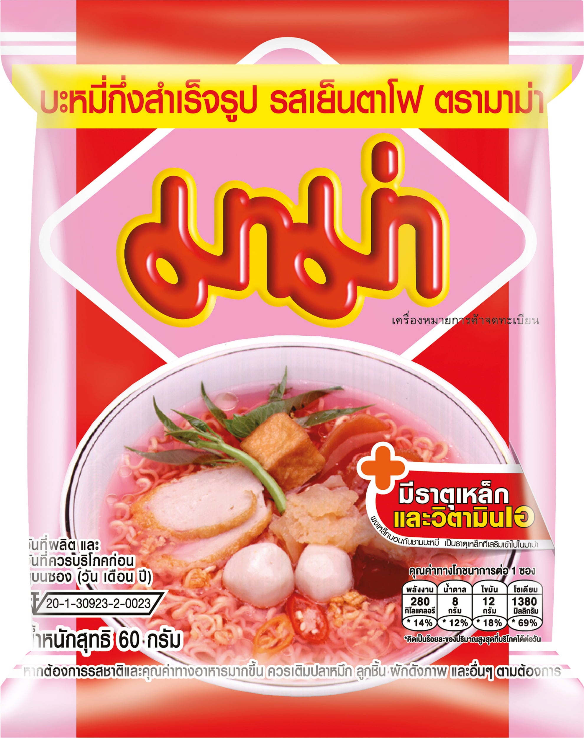 De instant noedels van het merk MAMA in de smaak "Yentafo" brengen je de typische Thaise mix van zoete en pittige bouillon met garnalensmaak en een vleugje sojasaus. De noedels met fijne textuur kunnen in slechts enkele minuten worden bereid.