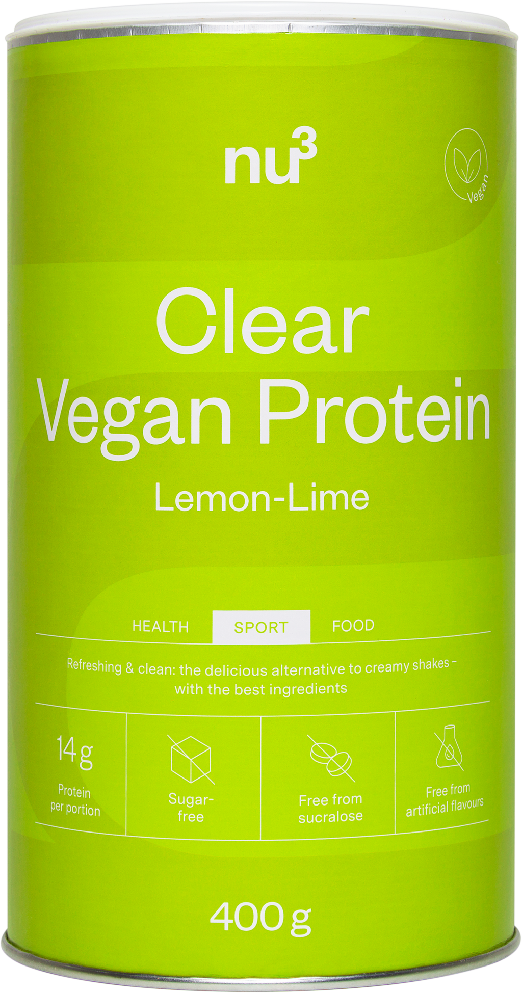 Ben je op zoek naar een licht, vegan alternatief voor conventionele eiwitshakes? Dan is nu3 Clear Vegan Protein iets voor jou! Verfrissend als limonade, plantaardig en volledig vrij van toegevoegde suikers* - deze drank past perfect in je actieve dagelijkse leven.