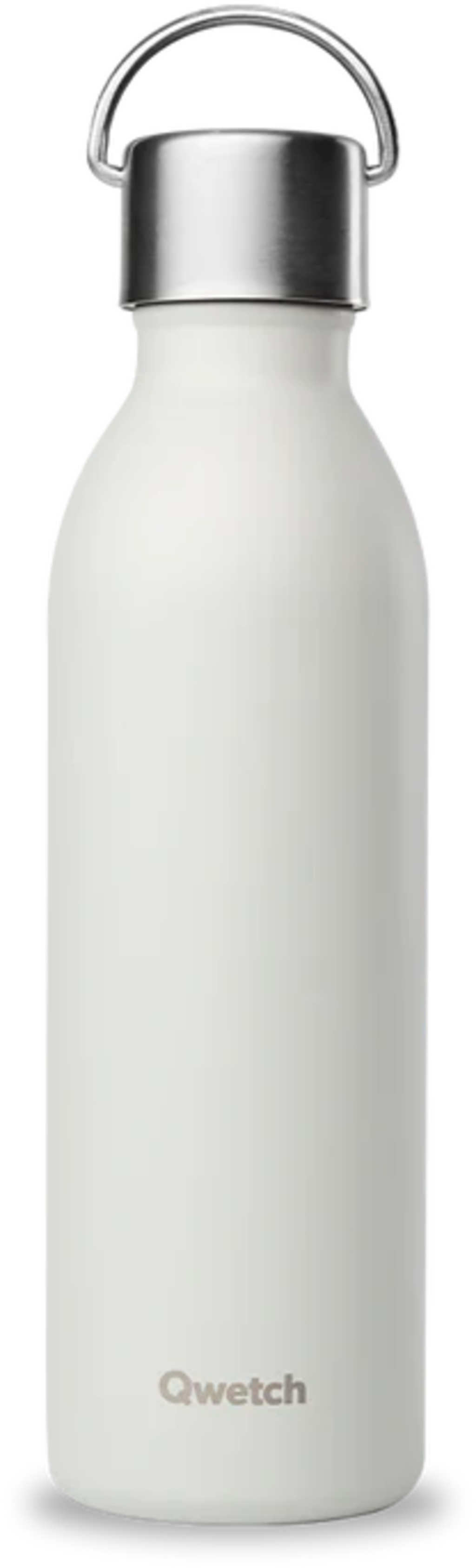 De veelzijdige, BPA-vrije roestvrijstalen Isotherm fles ACTIVE van Qwetch houdt drankjes tot 12 uur lang warm. Er zit een compact handvat op de dop.