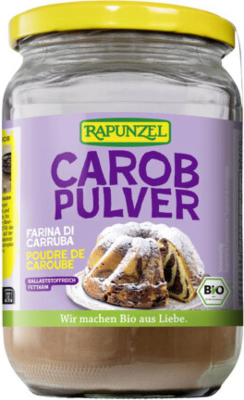 Opmerking: Carob wordt gemaakt van de peulen van de Johannesbroodboom. De peulen worden van de zaden gescheiden en fijngemalen tot poeder. Rapunzel laat dit product in Italië produceren.