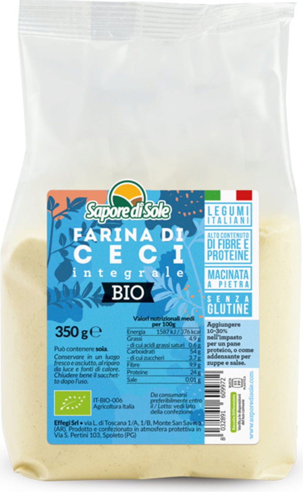 Sapore di Sole Biologisch Kikkererwtenmeel - Glutenvrij, 350 g