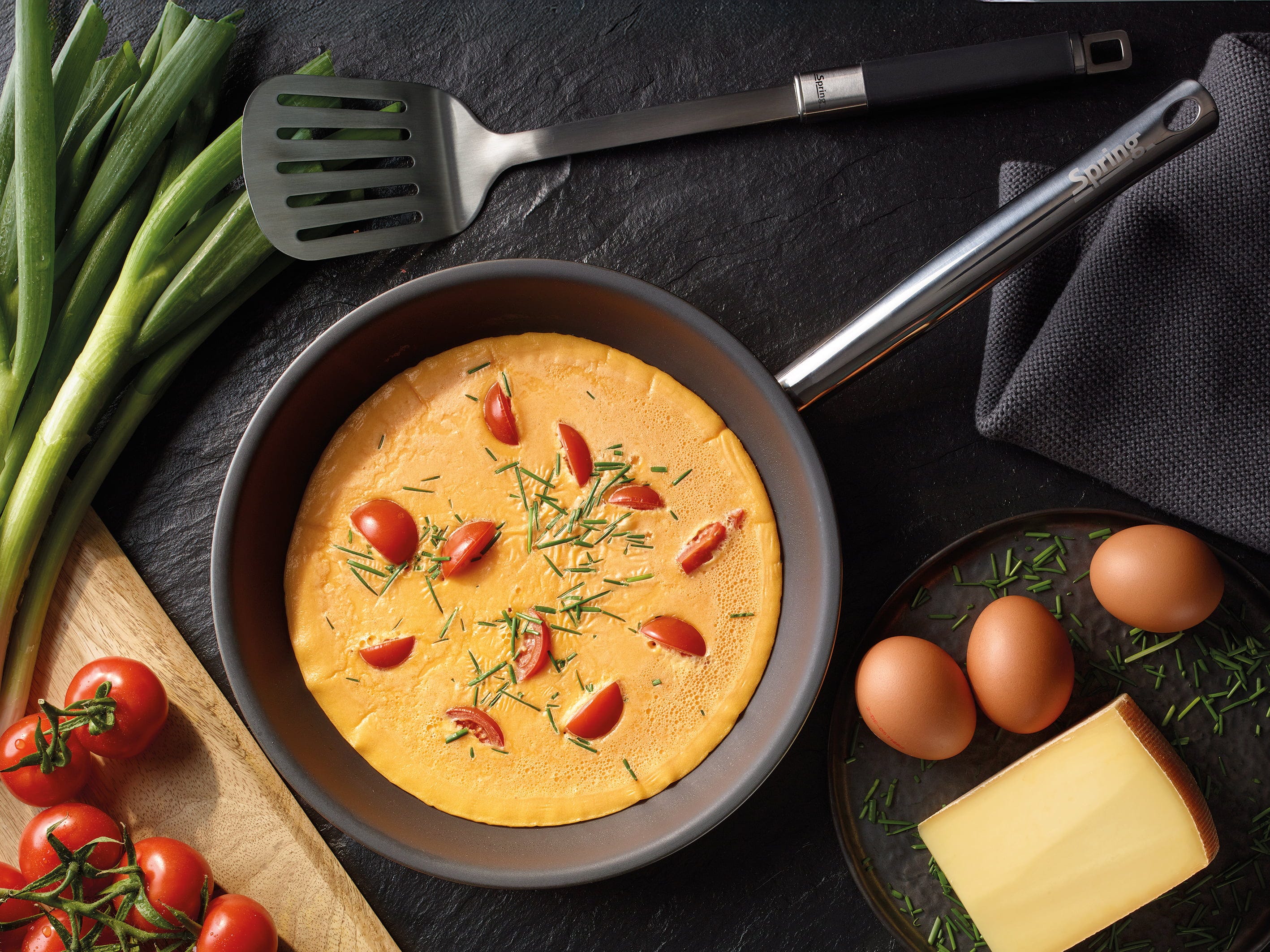 Ervaar met de Brigade Ultimate van Spring een nieuwe dimensie van bakken! Deze pan combineert de snelheid van het bewezen 5-laags meerlagenmateriaal met een revolutionair, extreem robuust oppervlak. Het bijzondere: een minimale hoeveelheid olie is al genoeg om het natuurlijke antiaanbak-effect te activeren. Of het nu gaat om flinterdunne crêpes, het perfecte spiegelei of een malse steak – alles glijdt moeiteloos uit de pan!