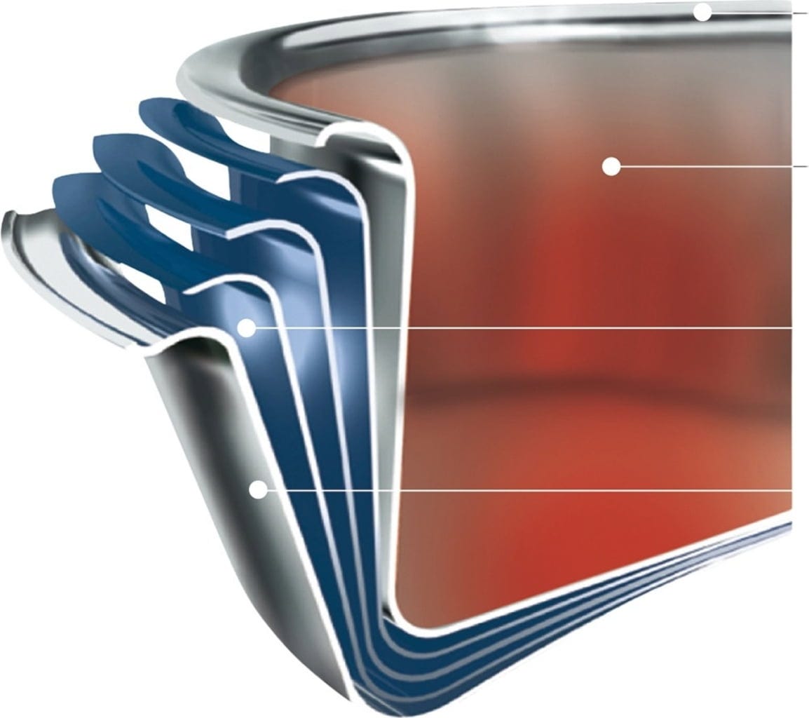 - 5-laags meerlagenmateriaal: Optimale warmteverdeling tot aan de rand