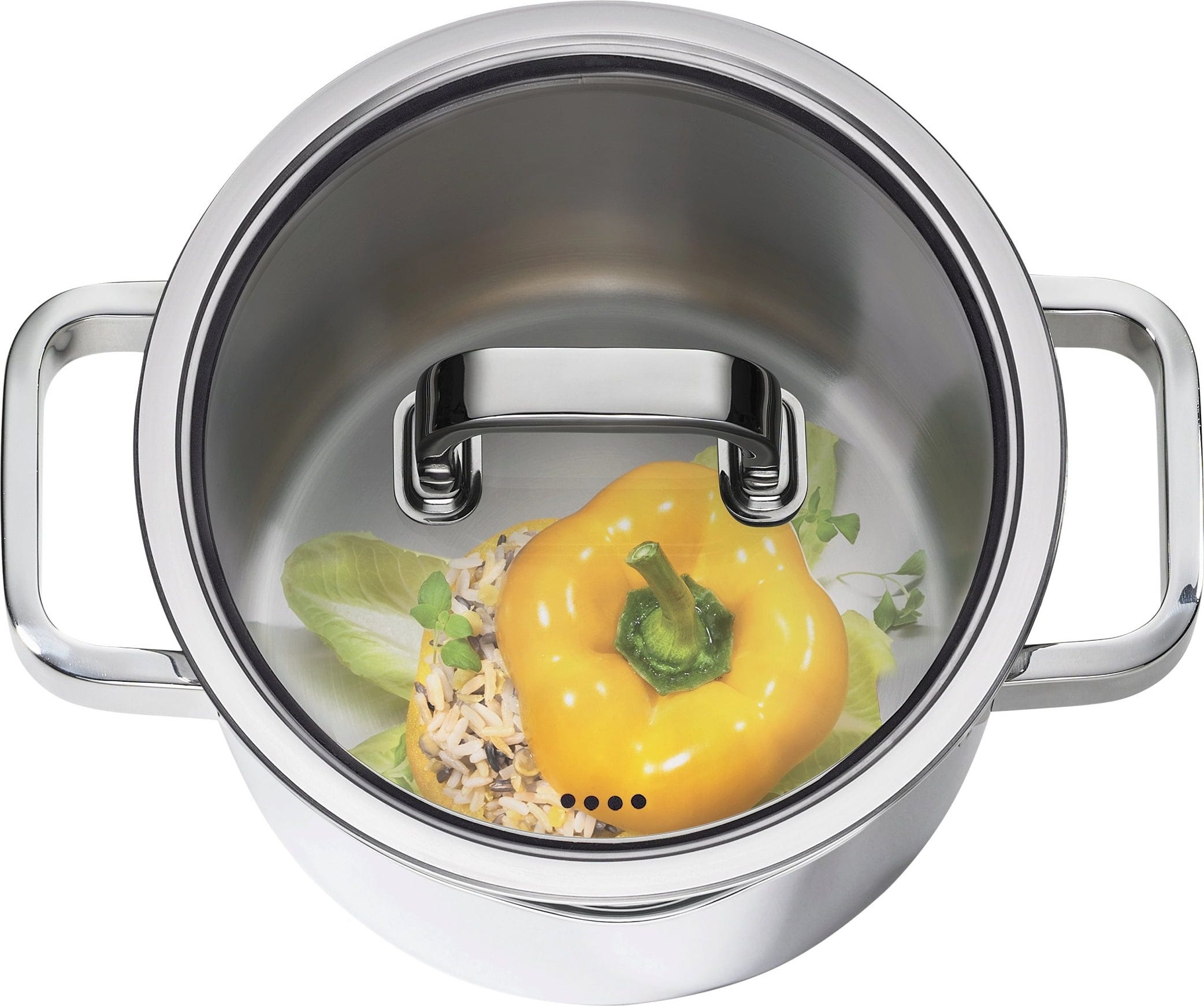 De robuuste glasdeksels met siliconenafdichting sluiten perfect af, zodat je je creaties tijdens het vitaminevriendelijke garen altijd in het oog hebt. Dankzij de praktische schaalverdeling aan de binnenzijde en de speciale schenktuit voor knoeivrij uitgieten, gaat het werk je vederlicht af. Of het nu op inductie, gas of elektrisch is – deze set biedt je van de compacte 2-liter pan tot het royale 6,5-liter model de perfecte basis voor elk menu. Na het feestmaal neemt de vaatwasser het werk gewoon van je over.