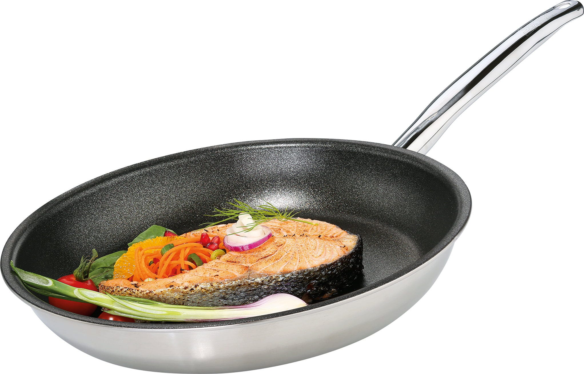 Met de Vulcano Intense Pro van Spring haal je echt professioneel niveau in je keuken! Dankzij het innovatieve 5-laags meerlagenmateriaal met een drievoudige aluminium kern wordt de hitte absoluut gelijkmatig en bliksemsnel tot in de hoge rand verdeeld, wat je de volledige controle geeft tijdens het bakken. De binnenverzegeling is versterkt met echte Zwitserse bergkristallen, wat de laag extreem slijtvast maakt – je kunt dus zonder zorgen metalen spatels gebruiken zonder het oppervlak te beschadigen.