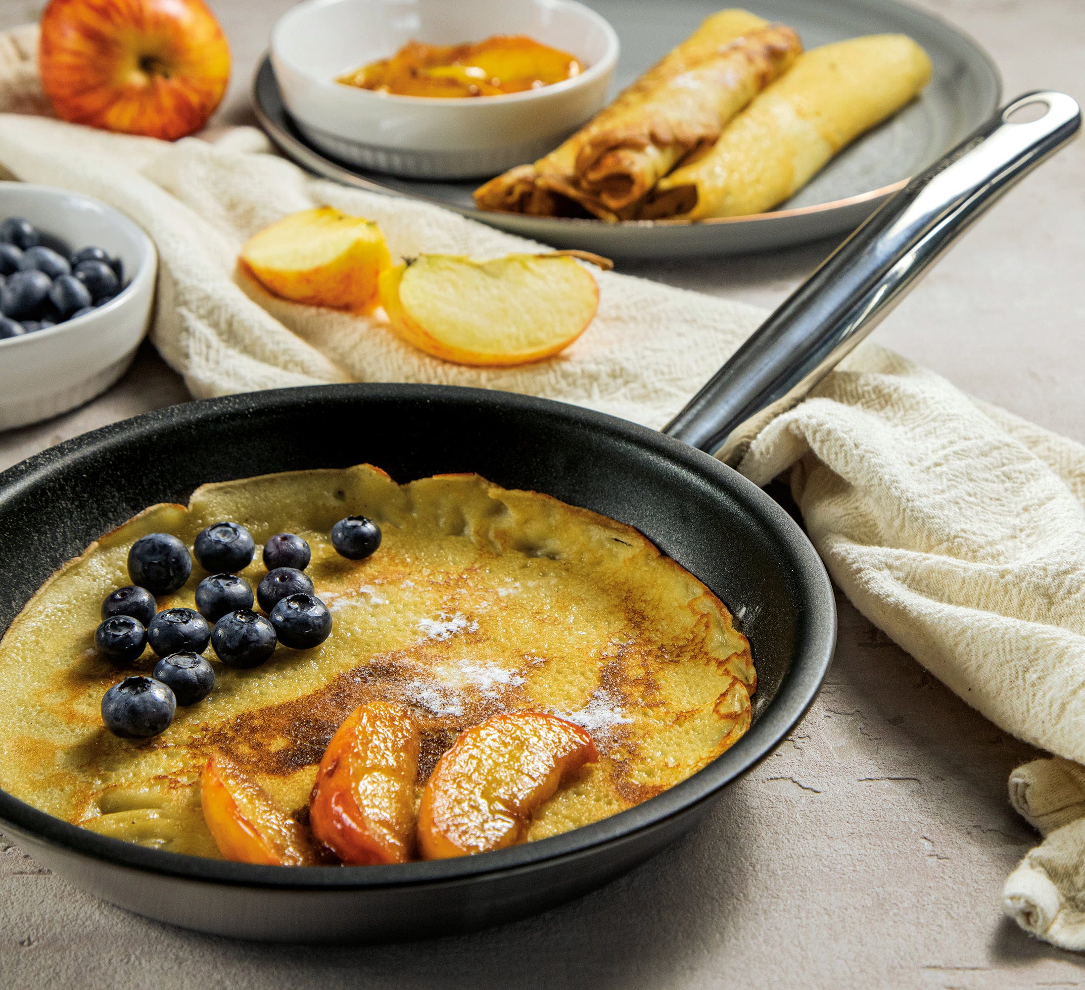 - Hoogwaardig 5-laags meerlagenmateriaal: Zorgt voor een extreem snelle en gelijkmatige warmteverdeling tot in de rand van de pan