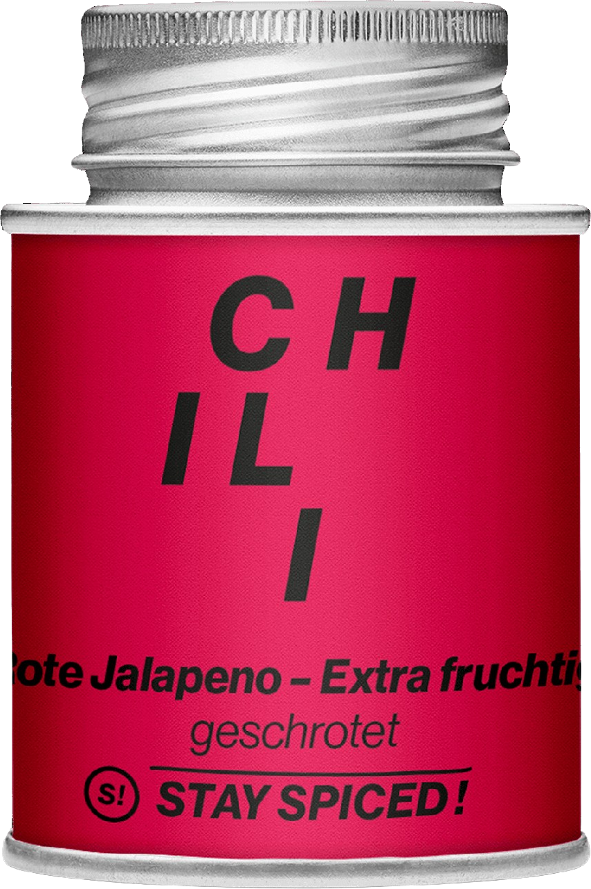 De iets grovere vlokken van de rode jalapeno peper van Stay Spiced! zijn bijzonder geschikt als finishing spice op zeevruchten, vis- en vleesgerechten.