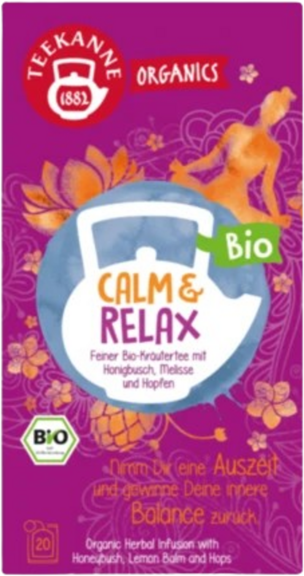 Wanneer het dagelijkse leven bijzonder hectisch is, weet je niet wat je eerst moet doen en gaan je gedachten in cirkels rond: zeg tegen jezelf "STOP" en neem een korte pauze met TEEKANNE Biologisch Calm & Relax! De theemelange met ontspannende biologische kruiden zoals hop, citroenmelisse en citroengras kalmeert je en geeft je tegelijkertijd nieuwe energie. Zoethout, honeybush en zoete bramenblaadjes geven de thee een subtiele, natuurlijke zoetheid. Vind je balans, en ga je uitdagingen met hernieuwde kracht aan!