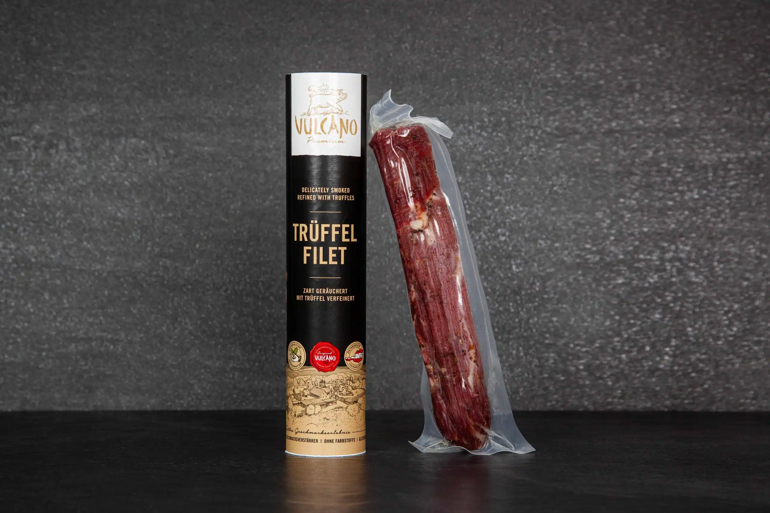 Het fijnste stuk, de filet, is verfijnd met zwarte truffel. Truffel geeft het vlees een heel bijzonder tintje – een combinatie die je zeker eens moet proberen – fijn op smaak en een beetje naar truffel smakend. Speciaal voor lieverhebbers van truffel en mager vlees