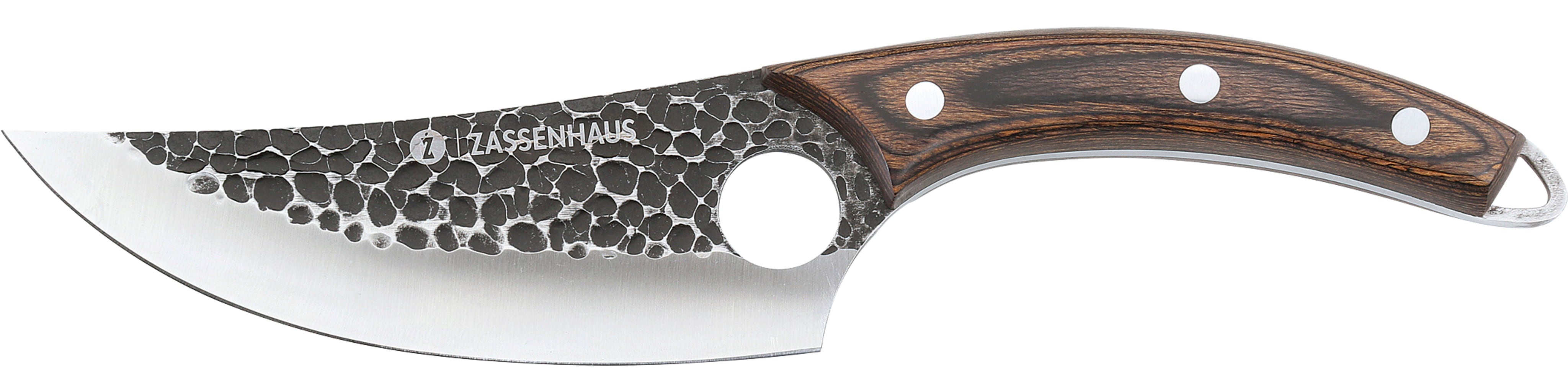 Het RANGER koksmes van Zassenhaus is de ideale metgezel voor avonturen in de natuur én in de keuken. Het scherpe, handgemaakte lemmet snijdt moeiteloos door vlees, groenten en zelfs door hout voor het kampvuur. De ergonomische pakkahouten handgreep met vingergat biedt maximale controle en perfecte balans.