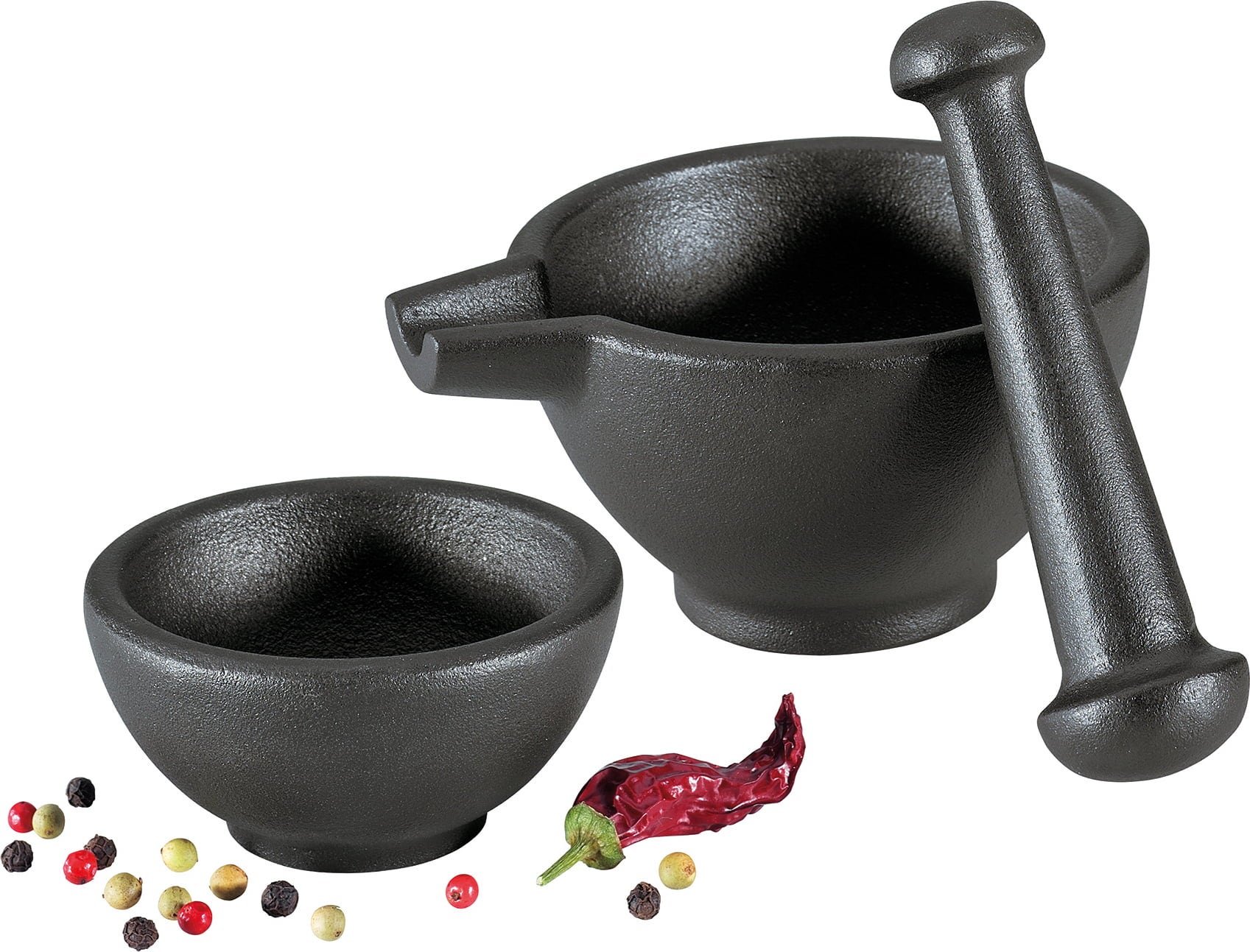 Met de gietijzeren vijzelset van Zassenhaus komen kruiden en specerijen volledig tot hun recht. Het zware materiaal zorgt voor optimale stabiliteit en een perfecte maling – of je nu peper, kruiden of noten fijnmaakt.