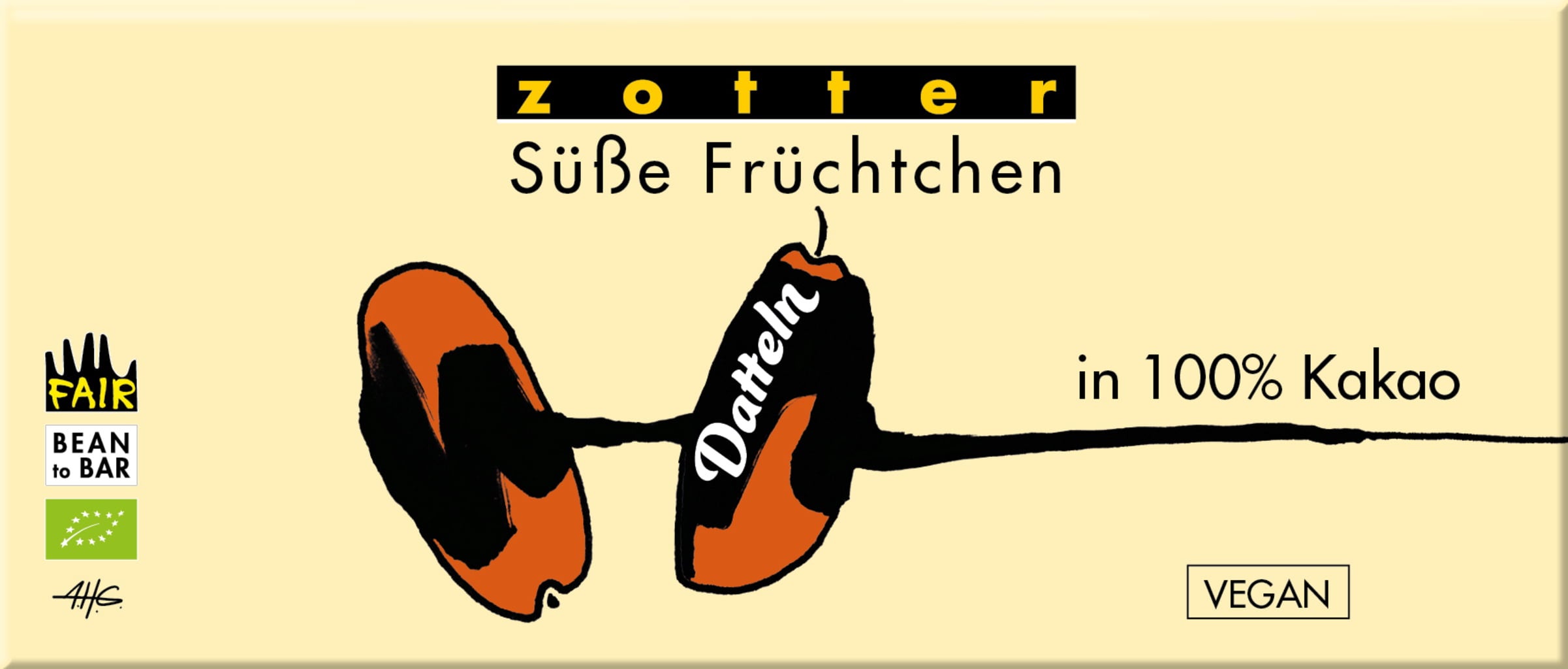 Zotter Schokoladen Biologische "Süße Früchtchen" Dadels in 100% Cacao, 80 g